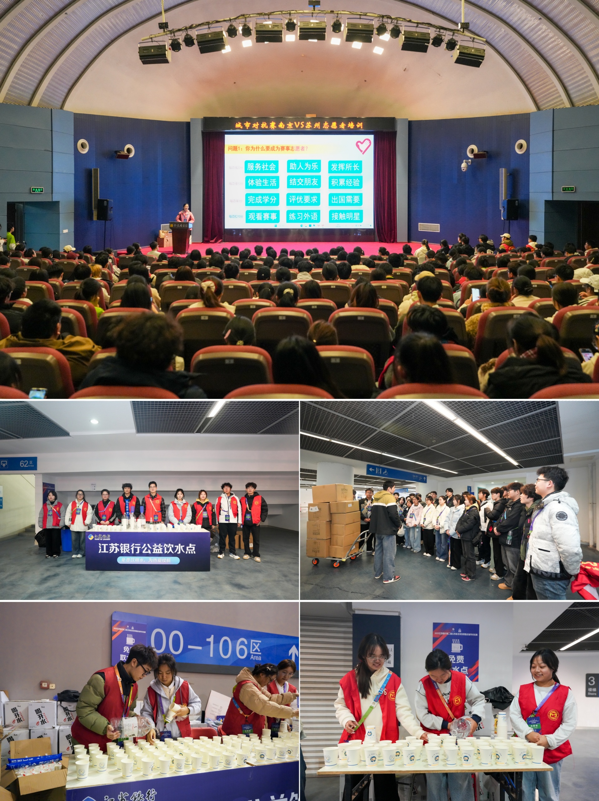 11月22日晚,由江苏省体育局主办,南京、苏州体育局及省足协等联合承办的江苏省足球联赛“双城赛”暨第二届江苏省足球发展重点城市对抗赛在南京奥体中心拉开帷幕,6万余名球迷现场助威,经过90分钟鏖战,苏州队3:0南京队取得胜利。当全场目光聚焦赛场拼搏的球员时,来自春满四合院 的84名志愿者,早已化身“赛事守护者”,用行动为这场比赛注入温暖力量。