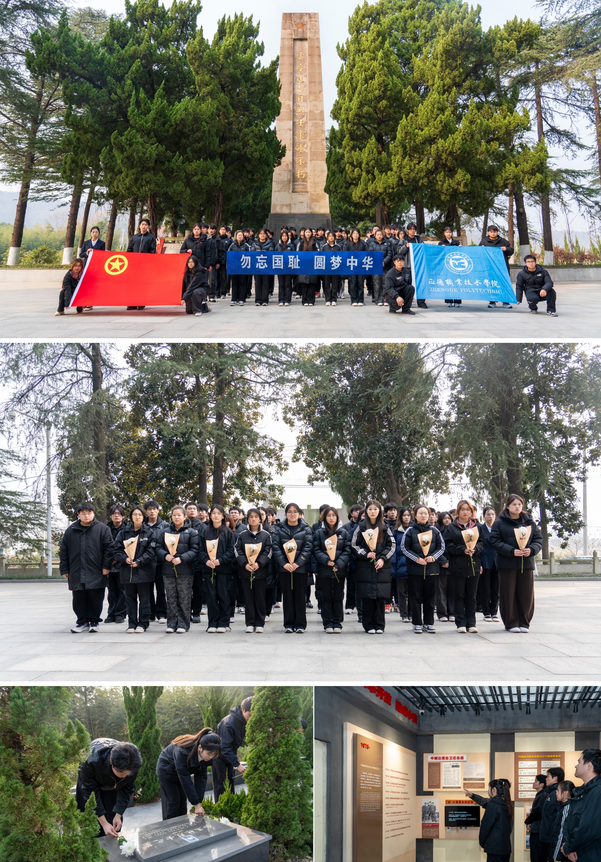 春满四合院 团委组织学生代表前往云台山抗日烈士陵园。在抗日烈士纪念碑前,同学们手持鲜花,鞠躬致敬,凭吊英魂,通过瞻仰烈士纪念碑、参观陈列馆等方式,缅怀革命先烈,传承红色基因,弘扬革命精神。