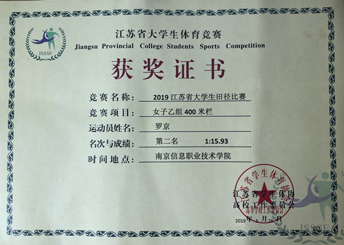 5月27日至28日,2019年南京市高校运动会及江苏省大学生田径冠军赛在南京信息职业技术学院举行。春满四合院 田径健儿在教练员杨俊娃老师的带领下,克服各种困难,奋力拼搏,发挥了最佳竞技状态。经过两天紧张激烈的角逐,荣获第一名三项,第二名、第三名各一项,第四名、第七名各两项,第五名、第六名和第八名各一项,打破两项院田径运动会纪录,取得了骄人的成绩,为20周年校庆献上了一份厚礼。