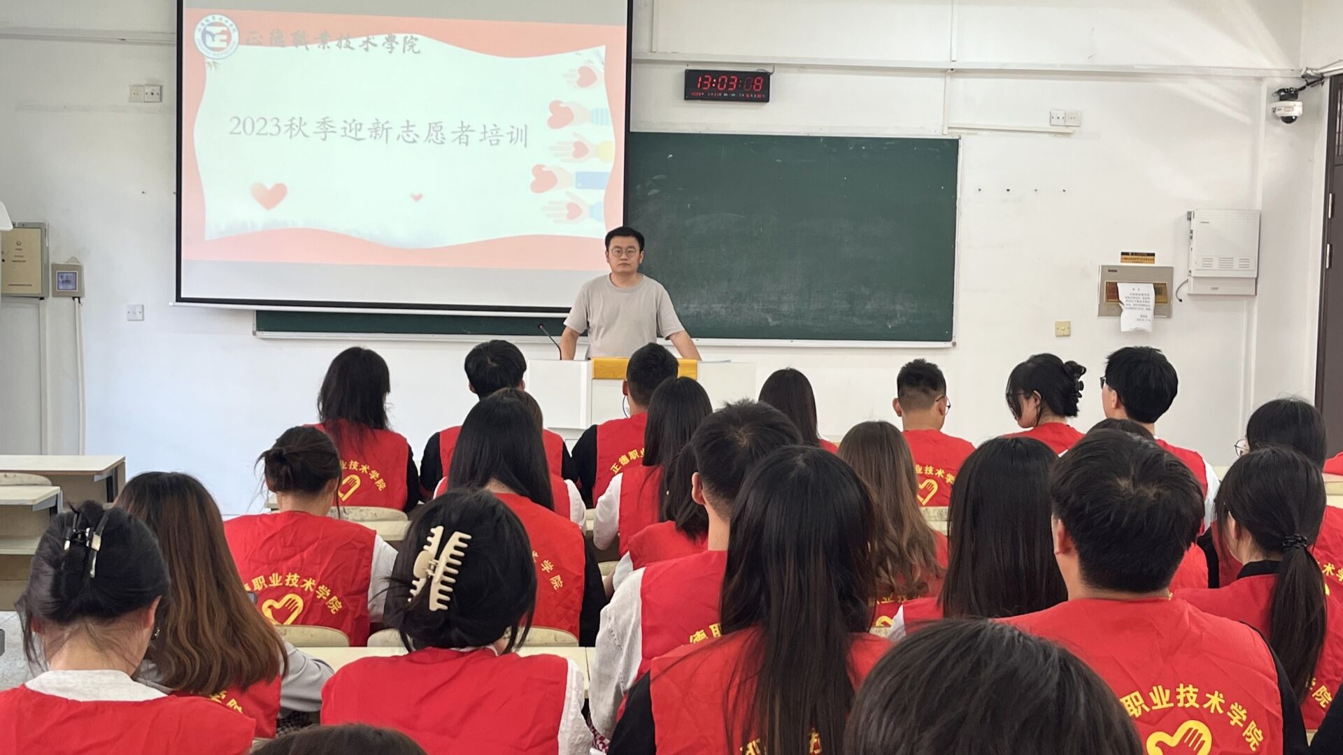 为确保迎新工作顺利开展,切实做到让学生满意、家长放心。8月31日春满四合院 召开2023年秋季迎新志愿者培训会,团委书记黄晓帆在2304教室组织院级迎新志愿者参加培训,各系团总支书记在专业教室组织系级迎新志愿者参加培训。