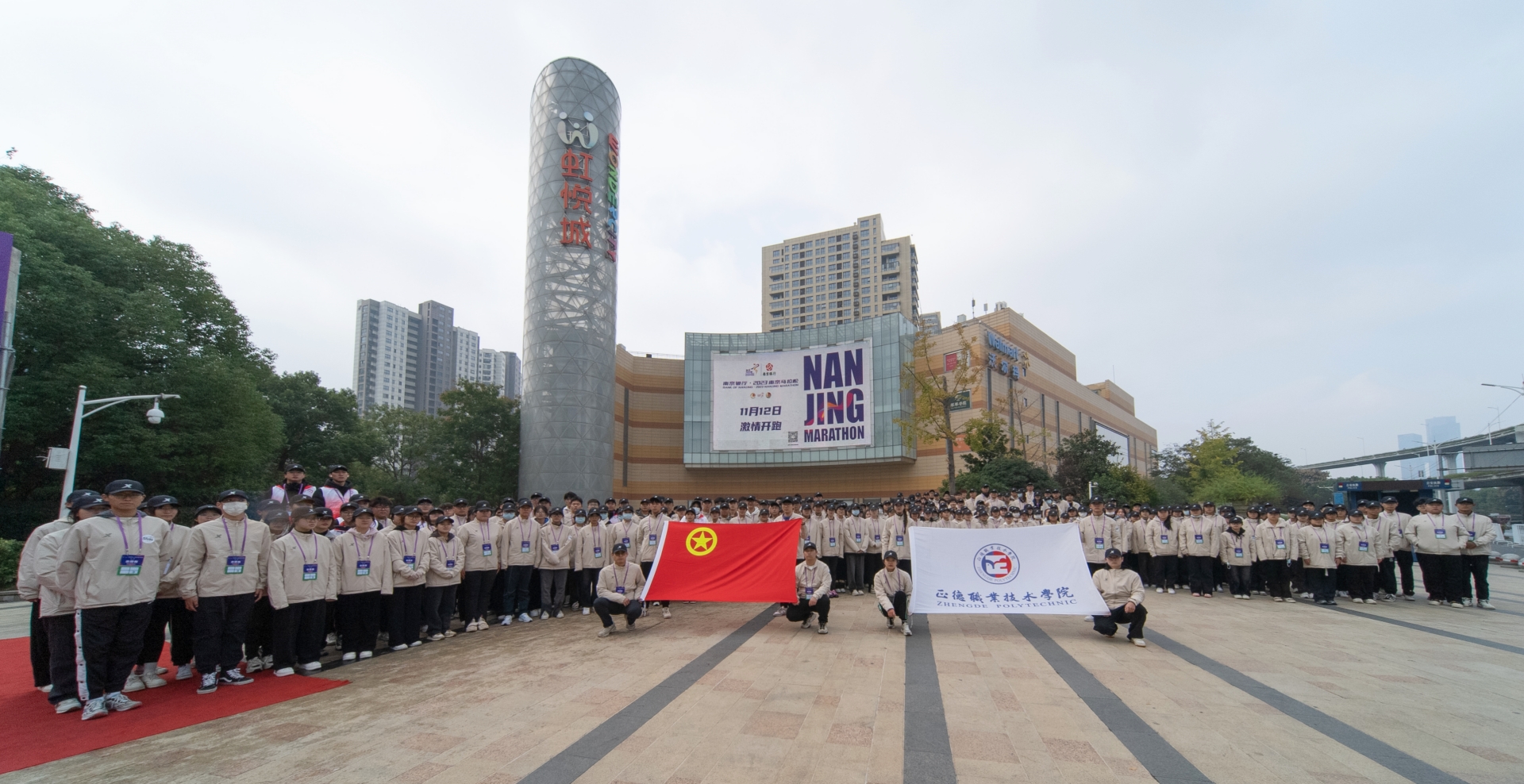 11月12日上午7:30,阔别三年的南京马拉松于奥体中心鸣枪开跑!来自国内外的3万名选手共赴这场竞速盛宴,为确保赛事高质量进行,应南京团市委商请,经过招募、面试、选拔、培训等环节,最终入选的250名青年志愿者在学生处处长祝佳俊、院团委书记黄晓帆、副书记魏兴彪等老师的带领下圆满完成了本次赛事志愿服务工作。