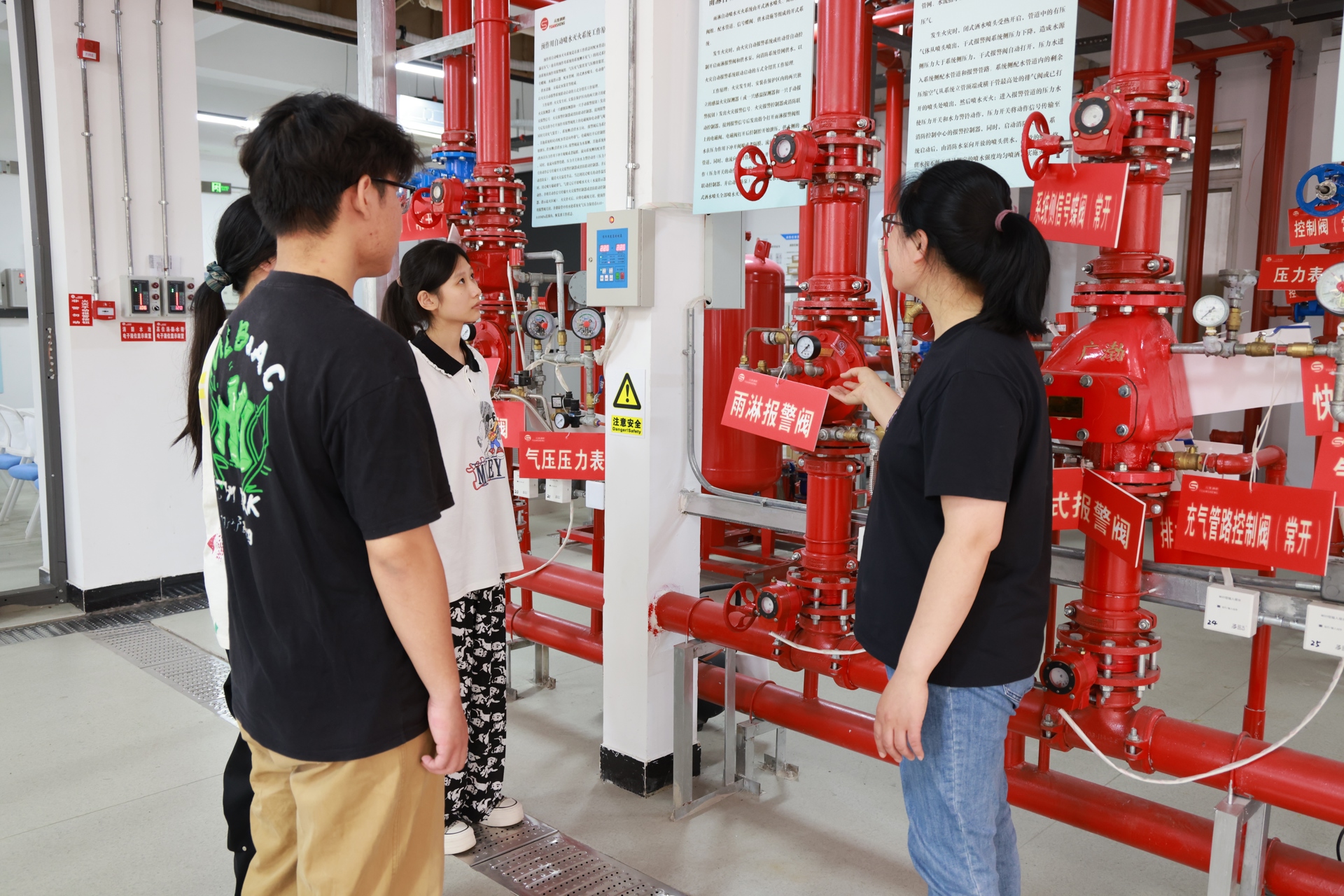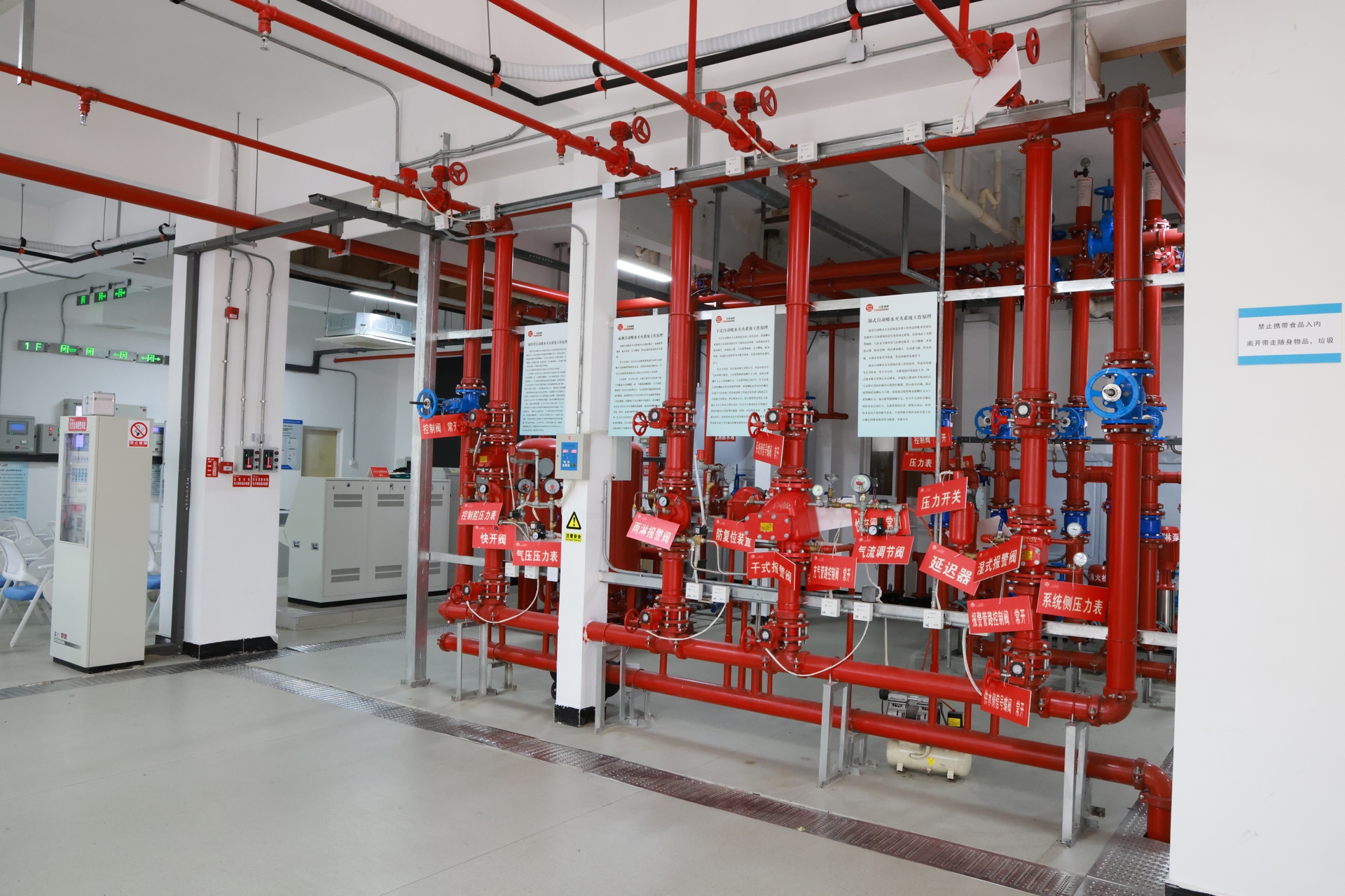 “正德—元生”消防综合实训中心占地面积约400平方米,集理论教学、实践实训、培训演练、示范展示于一体,配备100余套消防设施设备,包括消防电系统、消防水系统、消防风系统等,这些设备严格依照国家消防专业实操考核标准配置。其中,理论教学区配备了先进的多媒体设备,专业教师在这里为学生讲解关于消防工程制图、建筑防火设计、消防法规与管理等专业知识,打牢消防人才培养根基。