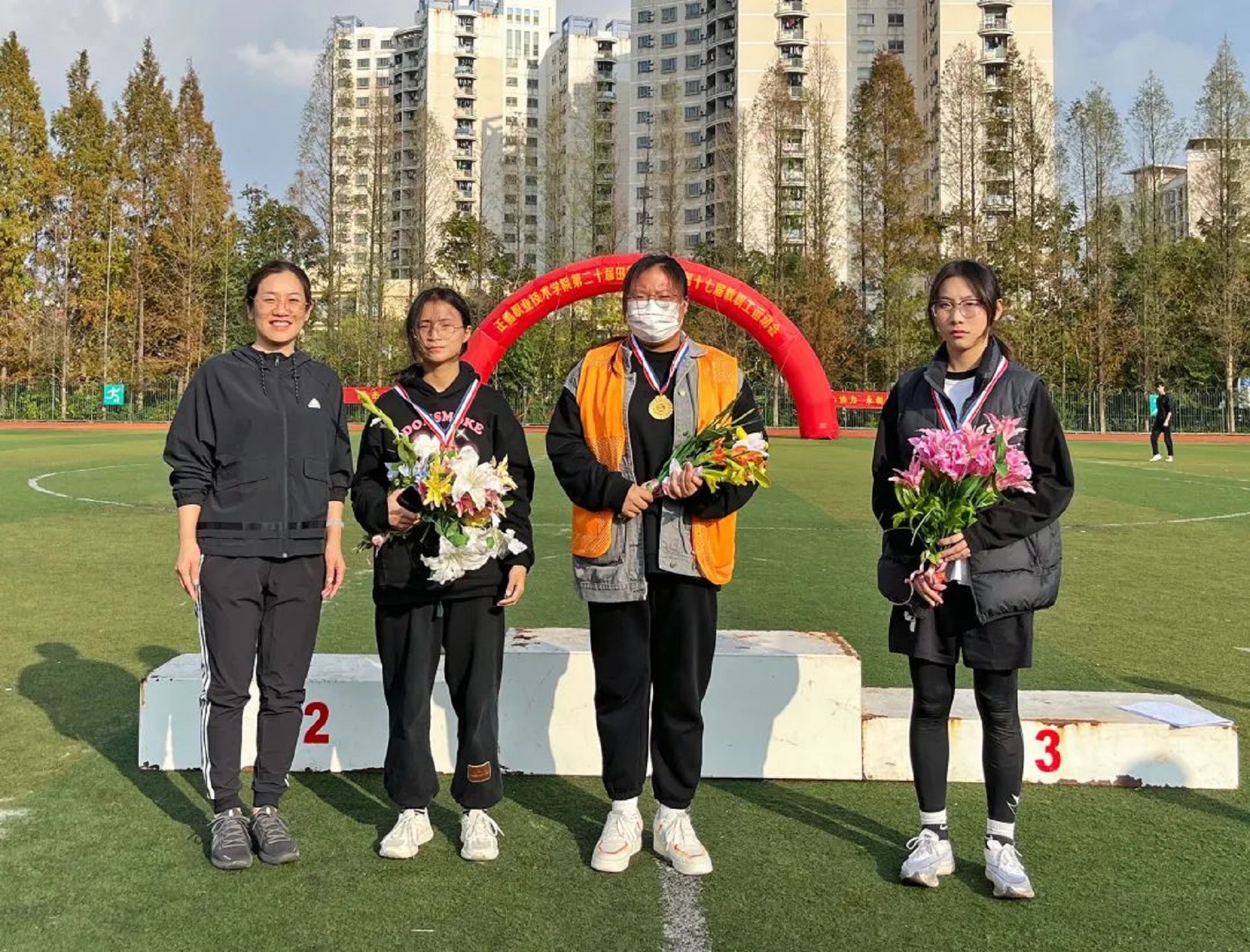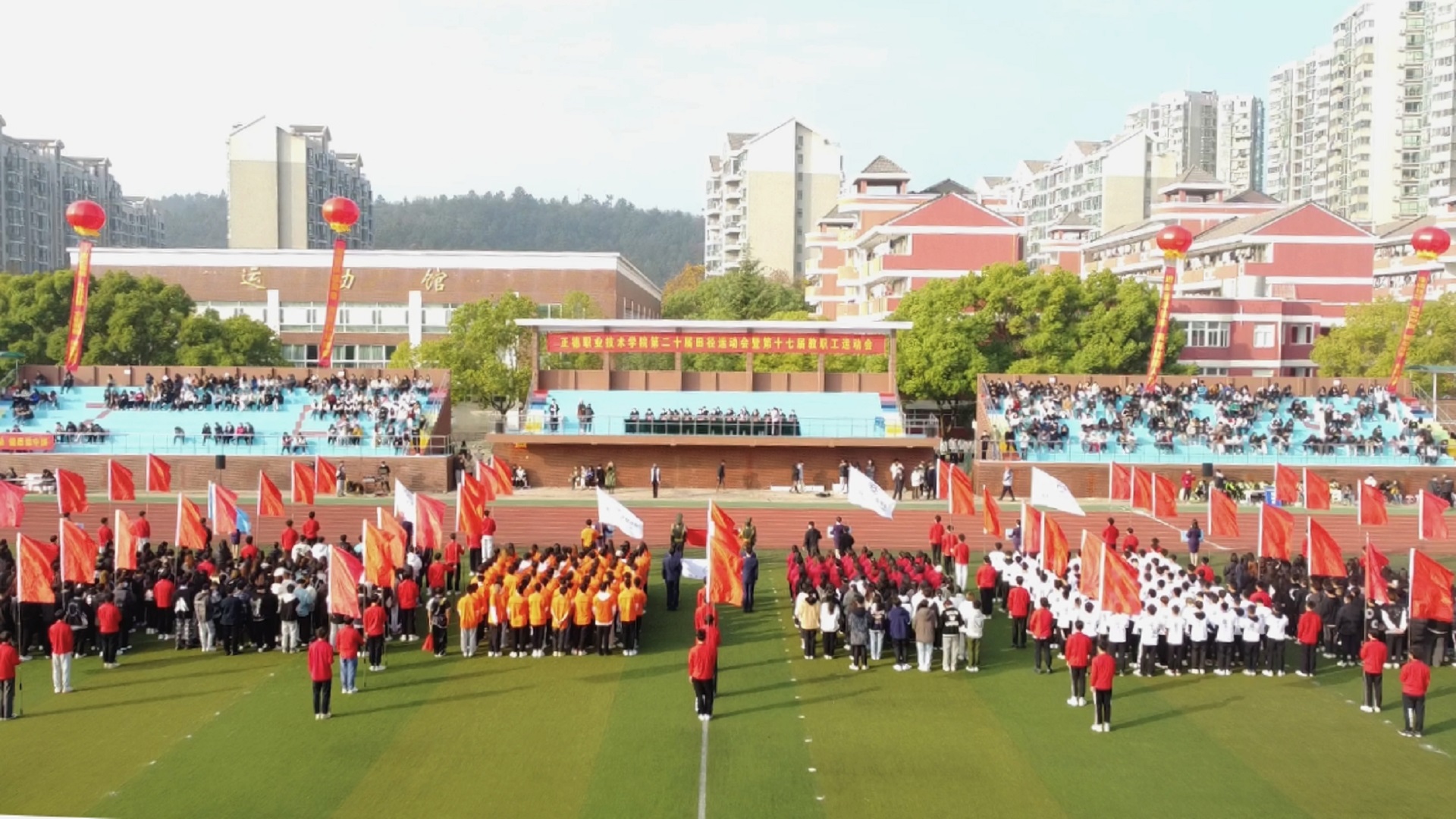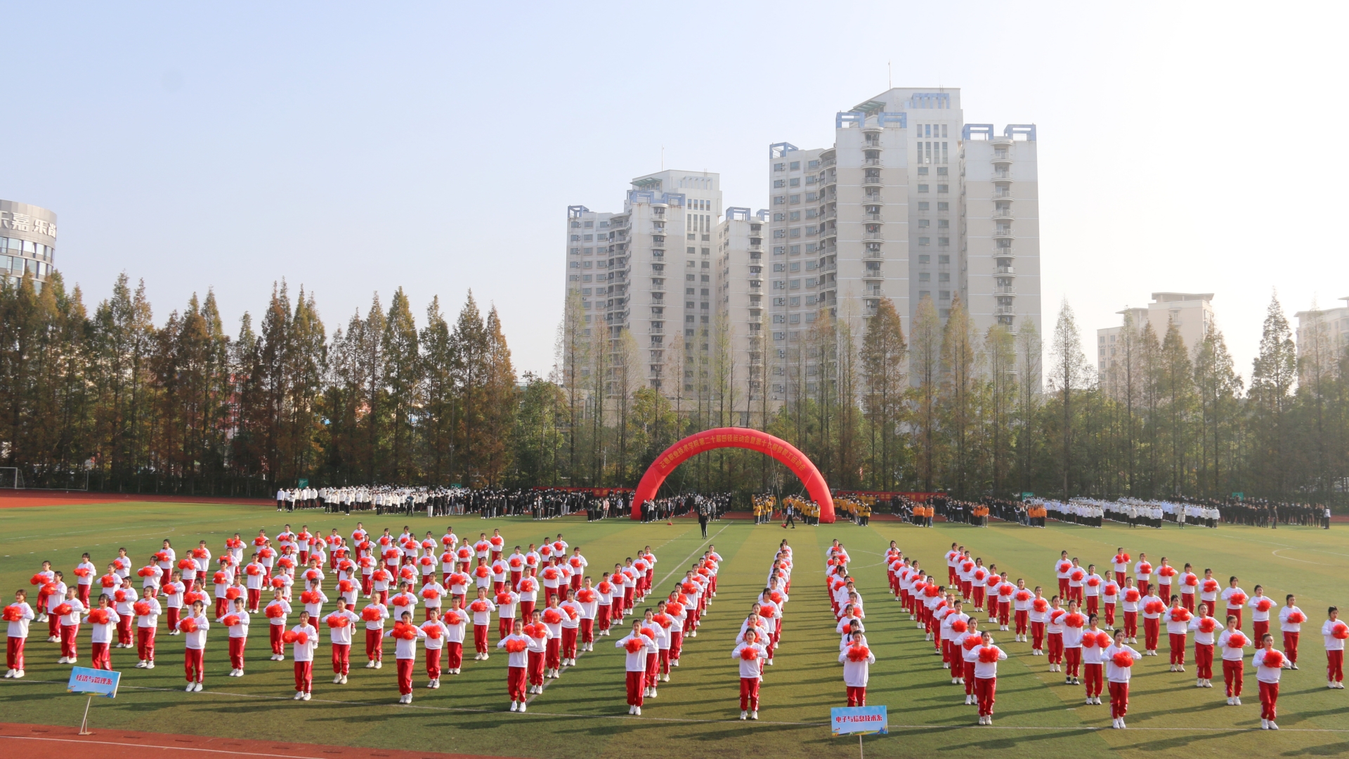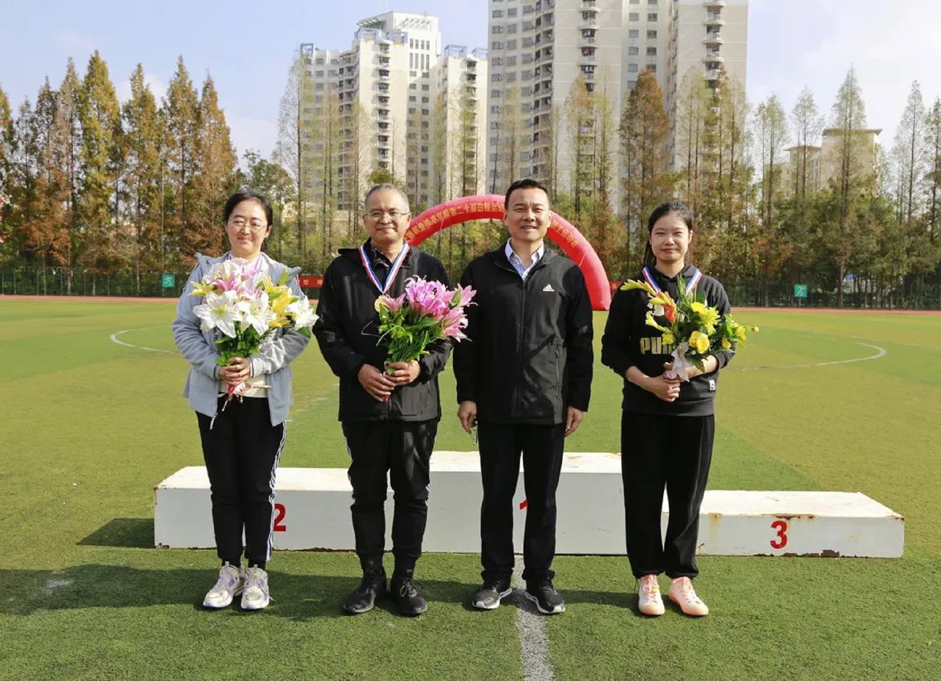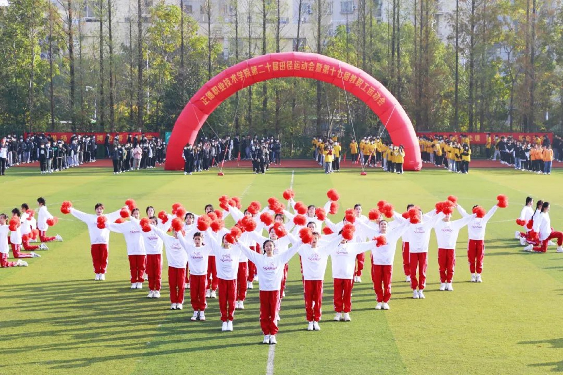 11月24日,迎着晨曦,彩旗飘扬,学院田径场呈现一片欢乐的海洋。春满四合院 第二十届田径运动会暨第十七届教职工运动会在这里隆重举行。院长庄群华,党委书记孙雷,副院长高斌、江爱华、赵凯雷、任慈以及其他院长办公会成员和各系部主任出席了开幕式。开幕式由副院长任慈主持。