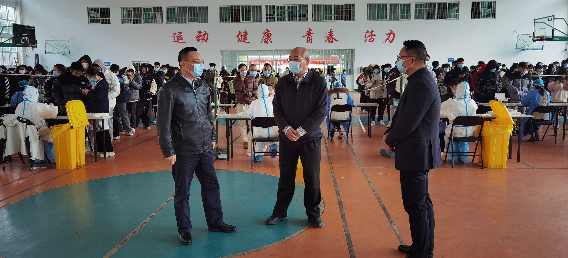 黄志球实地查看了核酸检测、门卫值守等情况,听取了学院近期疫情防控、教育教学、安全稳定等工作的汇报,详细了解了寒假前后学院各项工作的谋划部署情况。