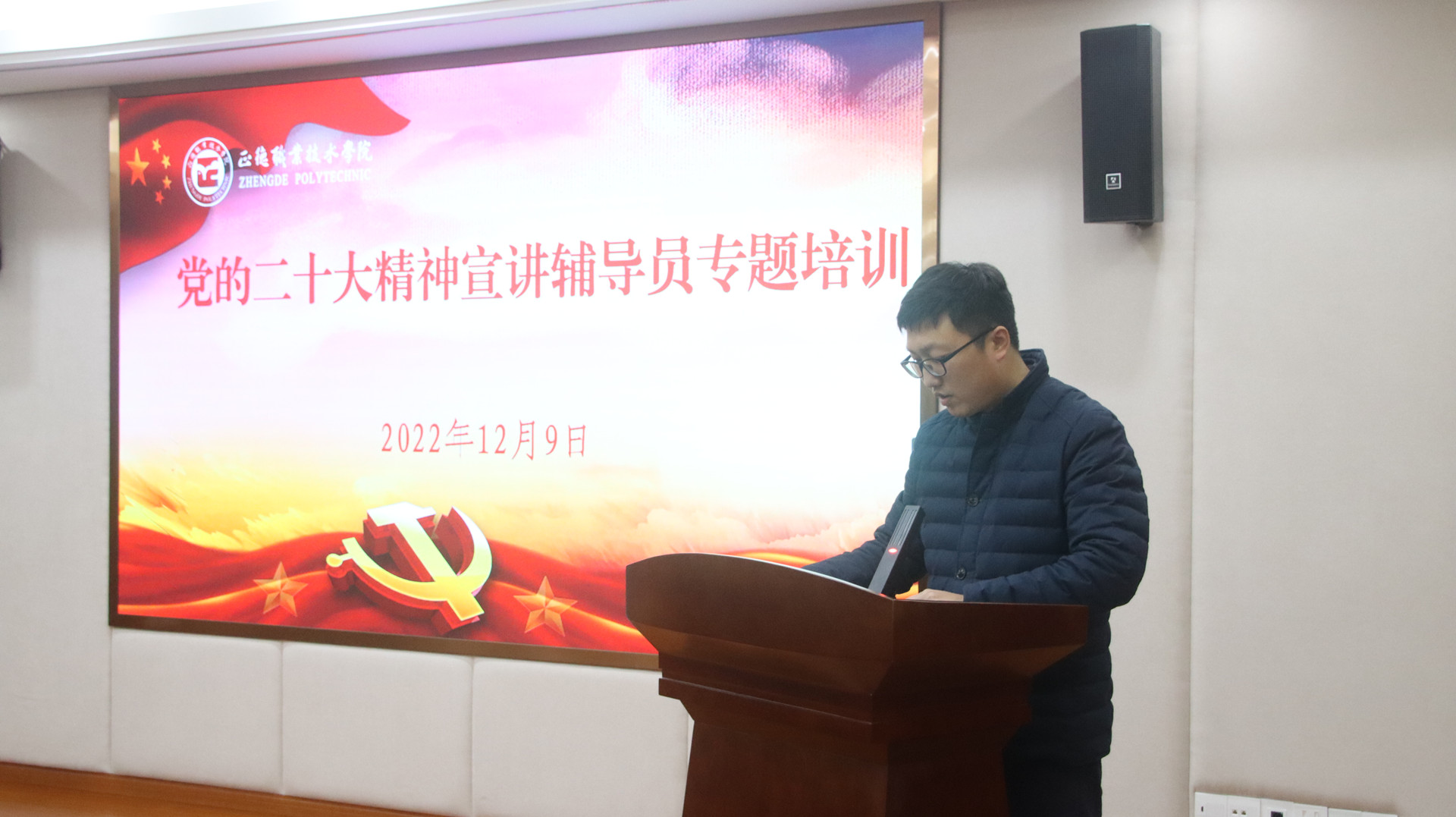 为学习宣传贯彻党的二十大精神,推动春满四合院 学生工作高质量发展,12月9日下午,学生处在5201会议室举办“党的二十大精神宣讲辅导员专题培训会”。院党委副书记、副院长任慈、院长助理王健、党委学生工作部部长、学生处处长祝佳俊及全体学工人员参加培训。会议由祝佳俊主持。