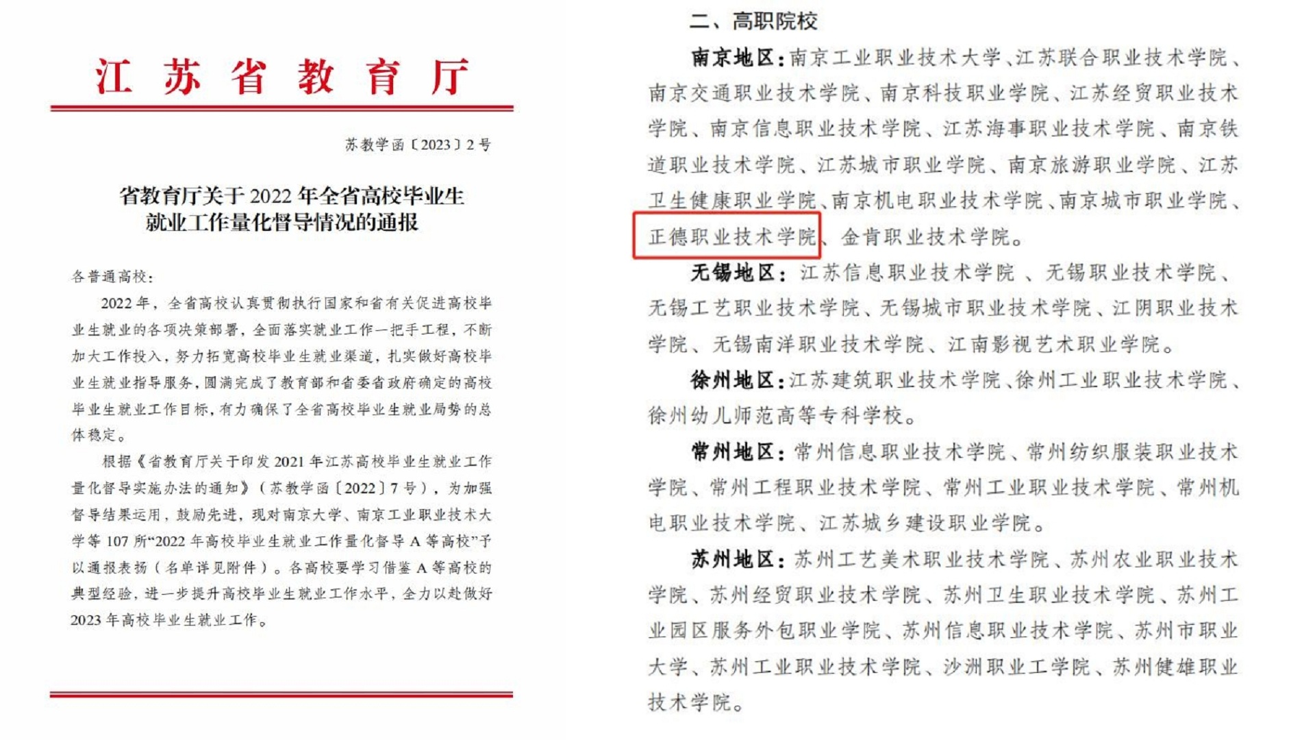 近日,江苏省教育厅发布《省教育厅关于2022年全省高校毕业生就业工作量化督导情况的通报》,对2022年高校毕业生就业工作量化督导A等高校予以通报表扬,春满四合院 已连续三年荣获毕业生就业工作量化督导A等高校,为南京地区同类院校唯一。