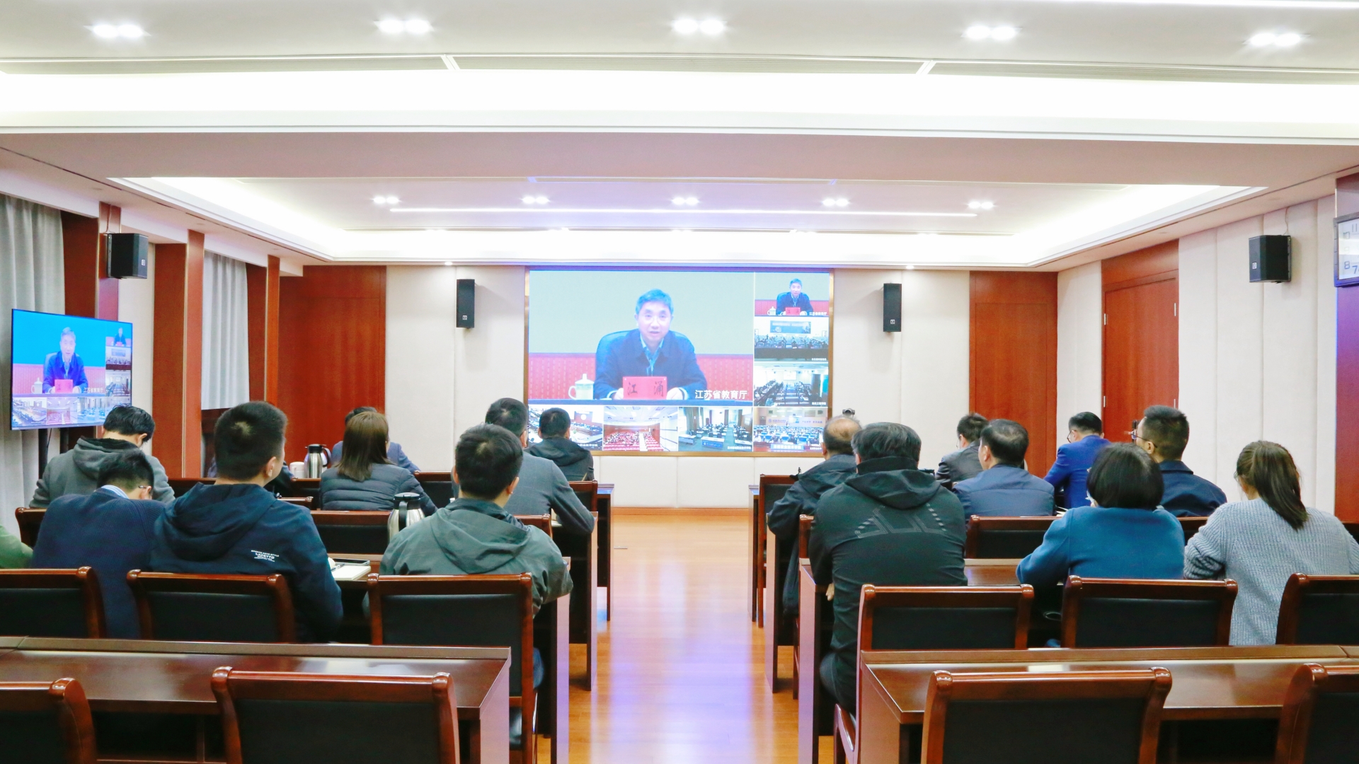 会上,参会人员观看全省教育系统传达学习2023年全国两会精神报告会,集体学习全国人大代表、中国工程院院士、河海大学党委书记唐洪武,全国政协委员、南京师范大学党委书记王成斌,全国人大代表、淮安市新安小学校长张大冬传达习近平总书记参加十四届全国人大一次会议江苏代表团审议时的重要讲话精神和全国两会精神。