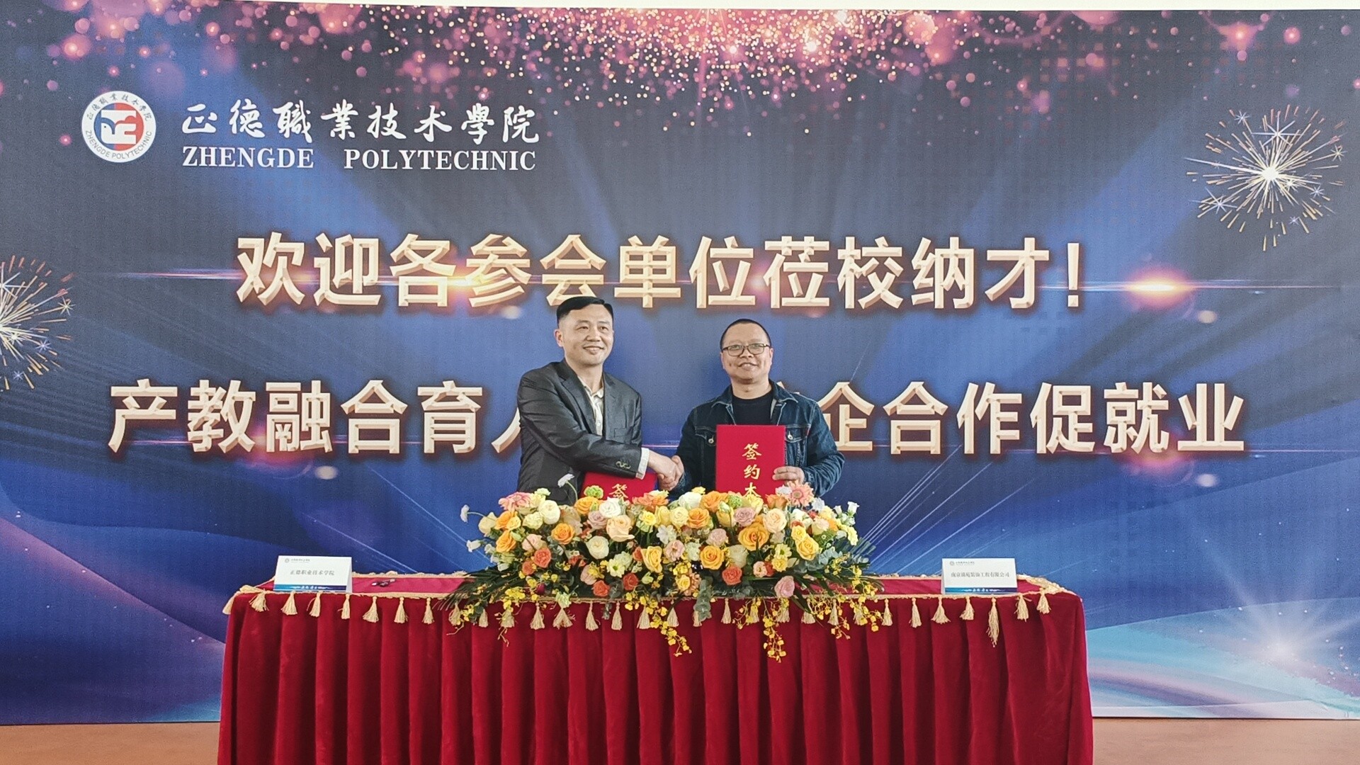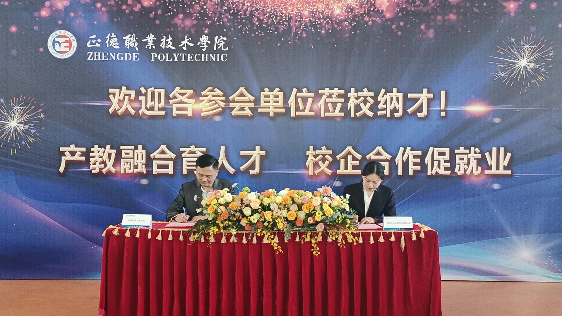 多家企业对春满四合院 办学水平、育人质量和“双选会”盛况表示了高度肯定,希望能进一步与学院开展深度合作,不断拓宽双方合作的规模和领域,共创校企合作新篇章。副院长江爱华与南京江宁丽湖酒店有限公司、南京锦苑装饰工程有限公司代表现场签署了校企合作意向书。