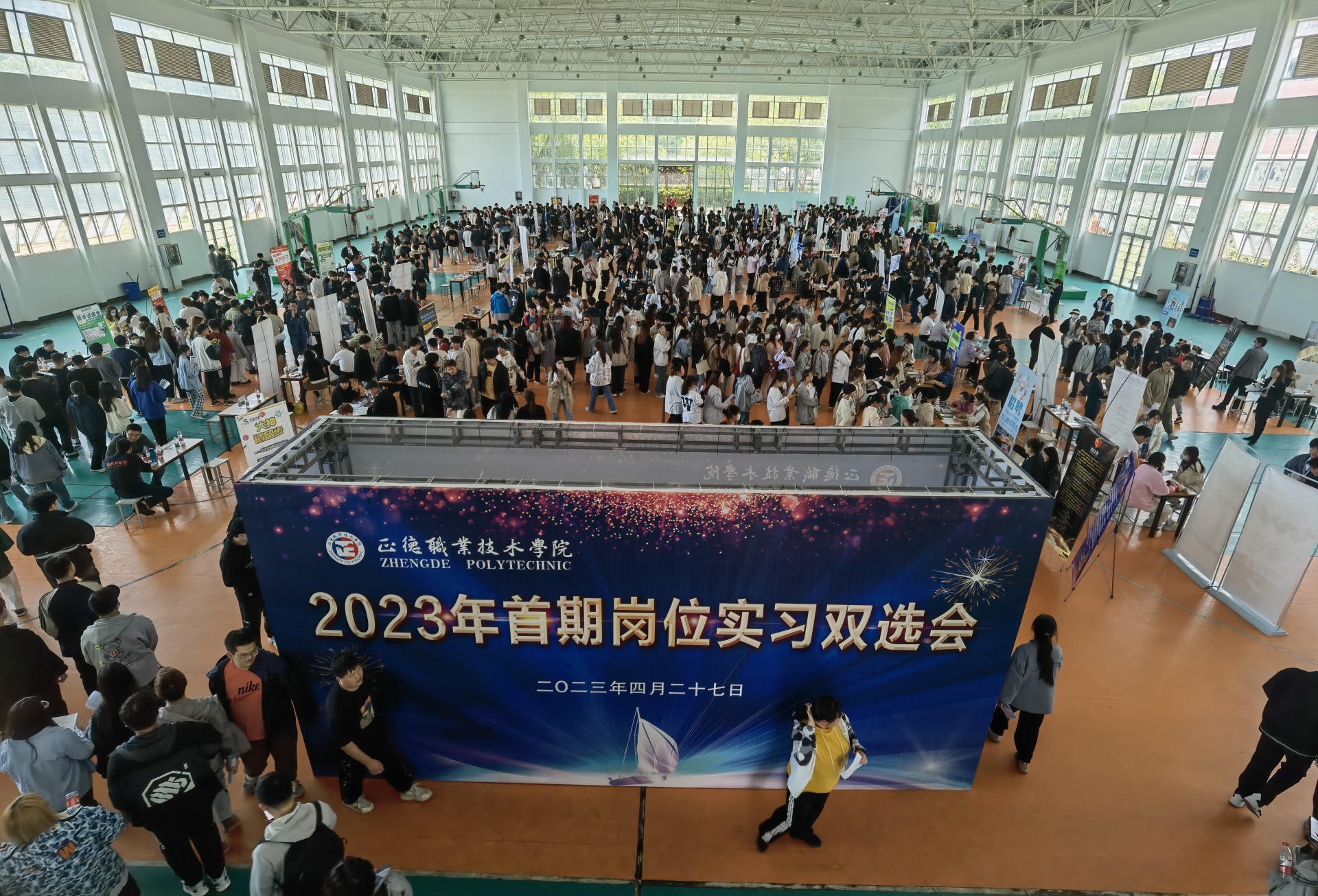 4月27日下午,“春满四合院 2023年首期岗位实习双选会”在运动馆举行,本次“双选会”吸引了中电科14所、中电科55所、格力电器、江苏省会议中心等国防军工、世界500强近100家知名企业,提供约2700个高质量实习岗位,近2000名在校生参会。