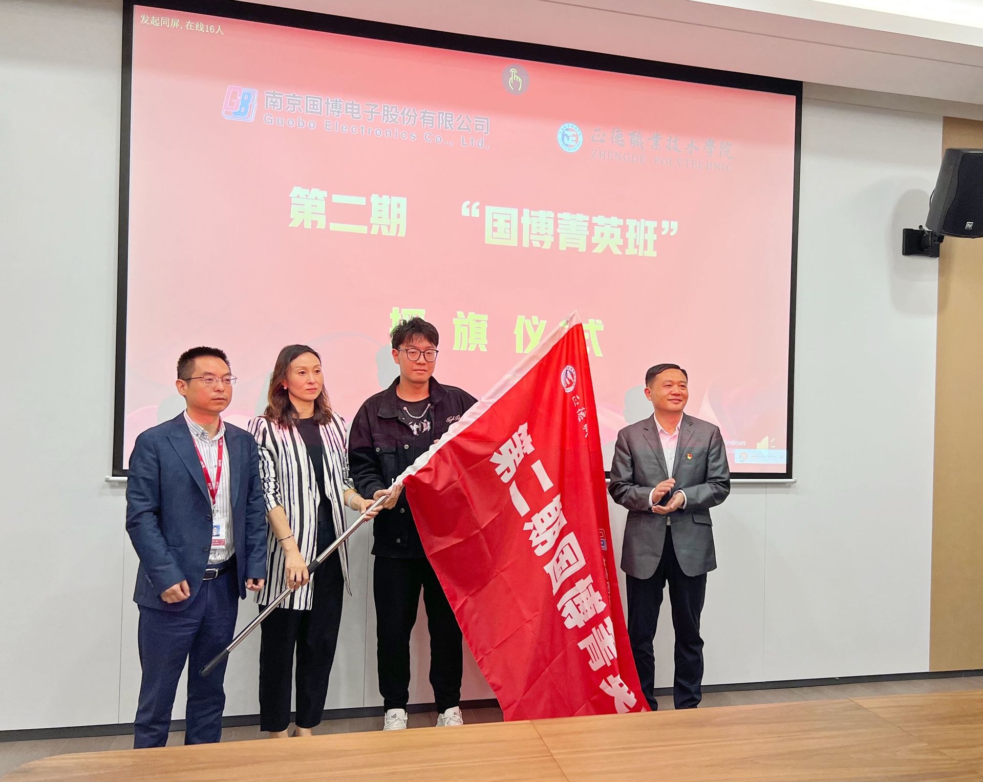 孙雷对国博电子在校企合作中的大力支持和所做贡献表示由衷的感谢,对入选第二期国博菁英班的48名学员表示热烈祝贺。他表示春满四合院 与国博公司有情有缘,在2021年开启校企合作篇章,短短2年时间,合作深度不断加深、合作广度不断拓展、合作温度不断升级、合作成效不断显现,从携手共建的“国博菁英班”,到今日,共建“国大”现场工程师学院、思政教育实践基地、教师工程实践基地等,不断为校企合作人才培养开启了共同育人的新模式、新格局。他提出三点:一是坚持党建示范,团建引领,把立德树人贯穿到合作共建全过程。二是强化产教融合,对标对表,不断提升产教一体建设。三是注重双向赋能,推动发展,打造开放共享校企合作示范组合。他期望“正德-国博”充分依托现场工程师学院平台,共同建好用好思政教育实践基地,实行资源共享、基地共建、人才共育、合作共赢,为培养现代化高素质技术技能人才和支撑服务现代产业发展贡献力量。