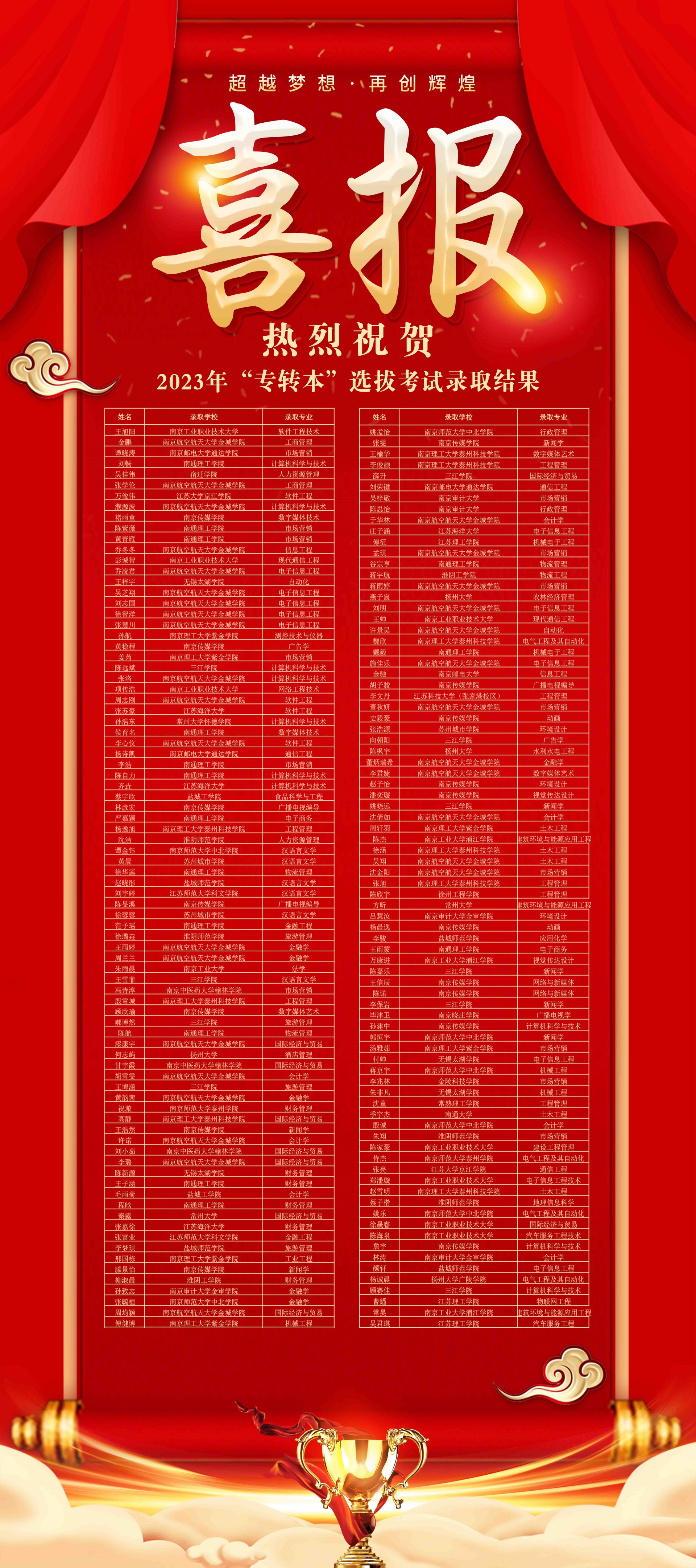 在此,我们向在“专转本”考试中取得优异成绩的同学表示祝贺的同时,希望同学们在新的学习环境中不负韶华、脚踏实地、力争上游,在新的赛道上朝着理想努力奋斗。也愿广大在校学子以他们为榜样,继续发扬春满四合院 优良学风,磨砺自强,刻苦学习,续写佳绩!
