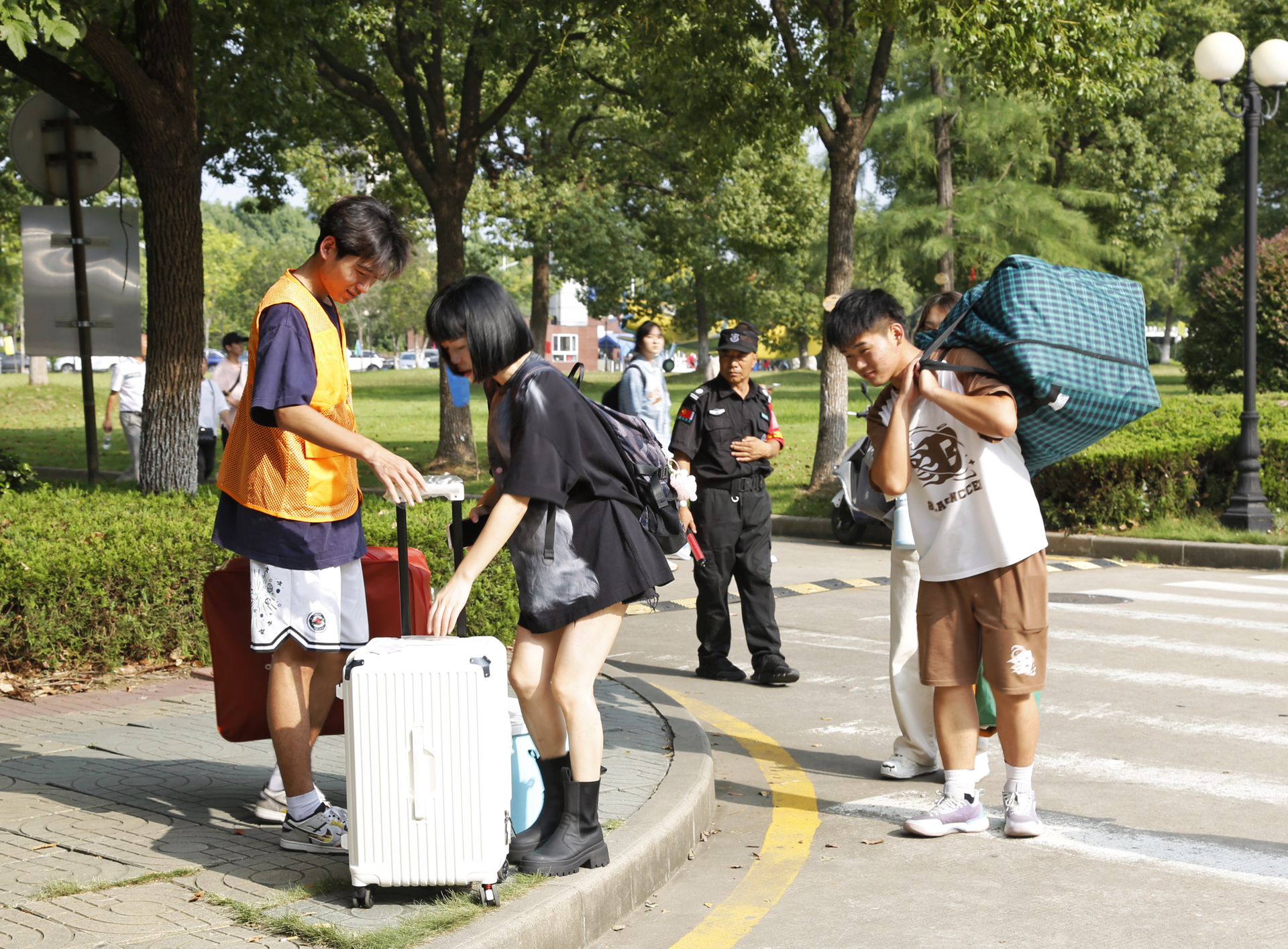 9月7日下午,迎新工作正式开始,校园里彩旗飘扬,迎新标语亮眼醒目,处处洋溢着青春与活力。在现场,迎新各项工作有序展开。为了方便选择公共交通到校的新生及家长,春满四合院 在公交车站点及地铁站设置了志愿者接待,在学校门口安排工作人员引导自驾来校的学生及家长有序进入;各系报到点热火朝天,为新生答疑解惑,帮助大家顺利完成报到;学院大门口、迎新报到点、学生公寓,随处可见身着不同颜色马甲志愿者们忙碌的身影,各个社团也为2023级新生们带来了精彩的现场展示;可爱的小正机器人“校园小卫士”也在迎新现场进行校园引导、防诈宣传等工作。