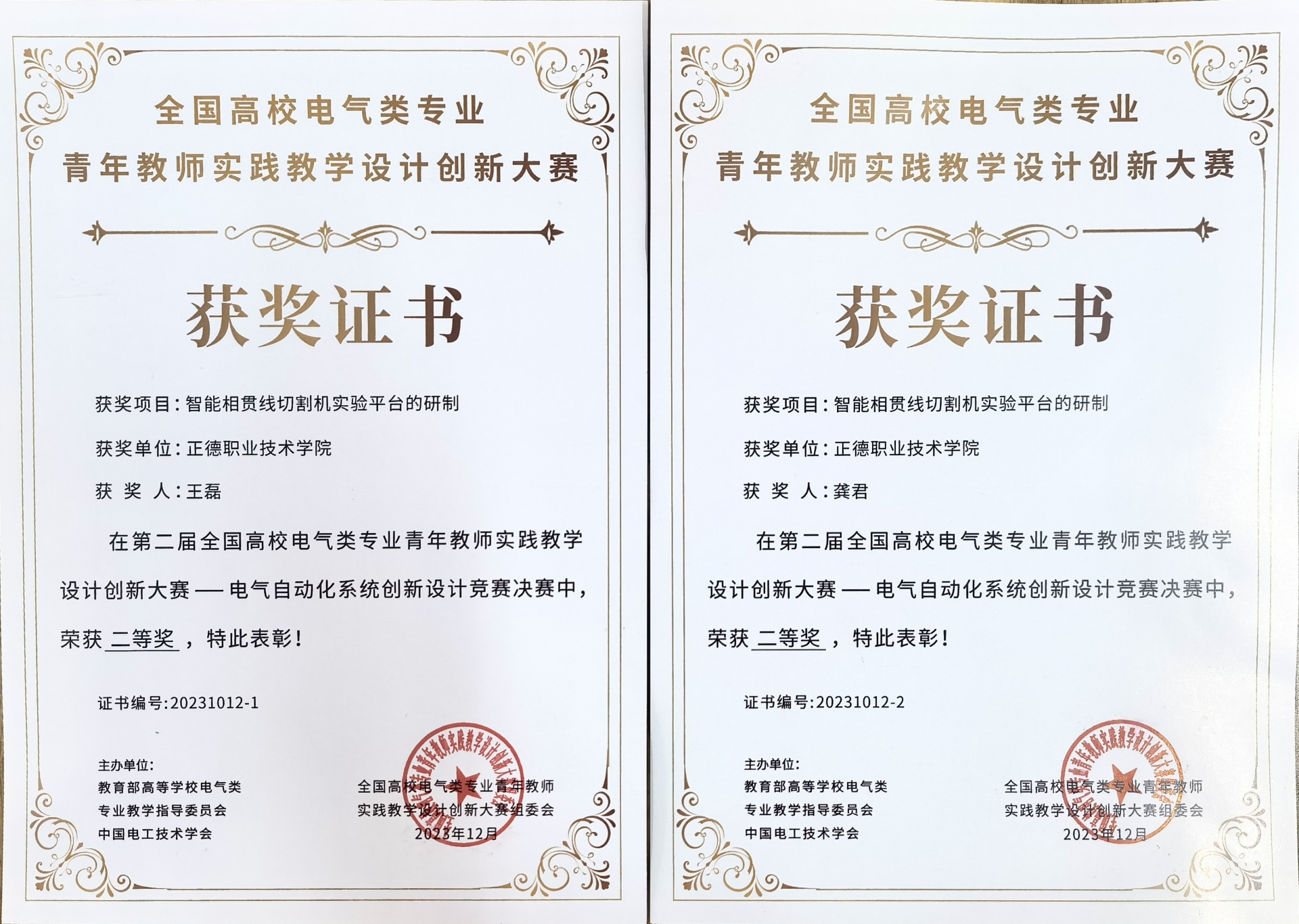 11月29日至12月2日,第二届全国高校电气类专业青年教师实践教学设计创新大赛在浙江金华圆满落幕。大赛由教育部高等学校电气类专业教学指导委员会与中国电工技术学会联合主办,中国电工技术学会电气工程教育专业委员会与浙江金华职业技术学院承办,浙江大学、浙江师范大学协办。春满四合院 汽车与机电工程系王磊、龚君两位老师参赛,获得电气自动化系统创新设计竞赛二等奖。