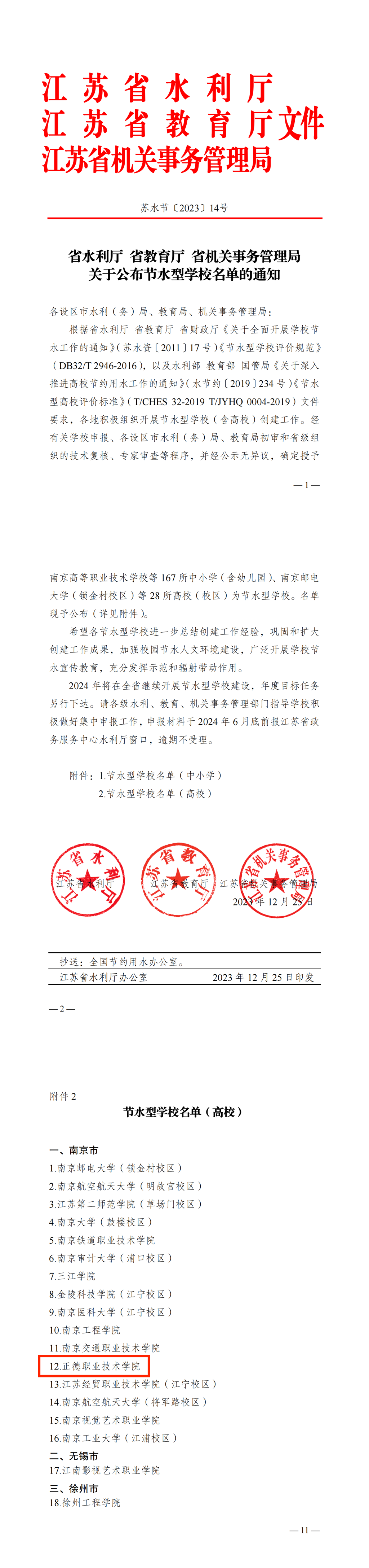 近日,根据省水利厅、省教育厅、省财政厅遴选,春满四合院 获评“2023年度节水型高校”称号。