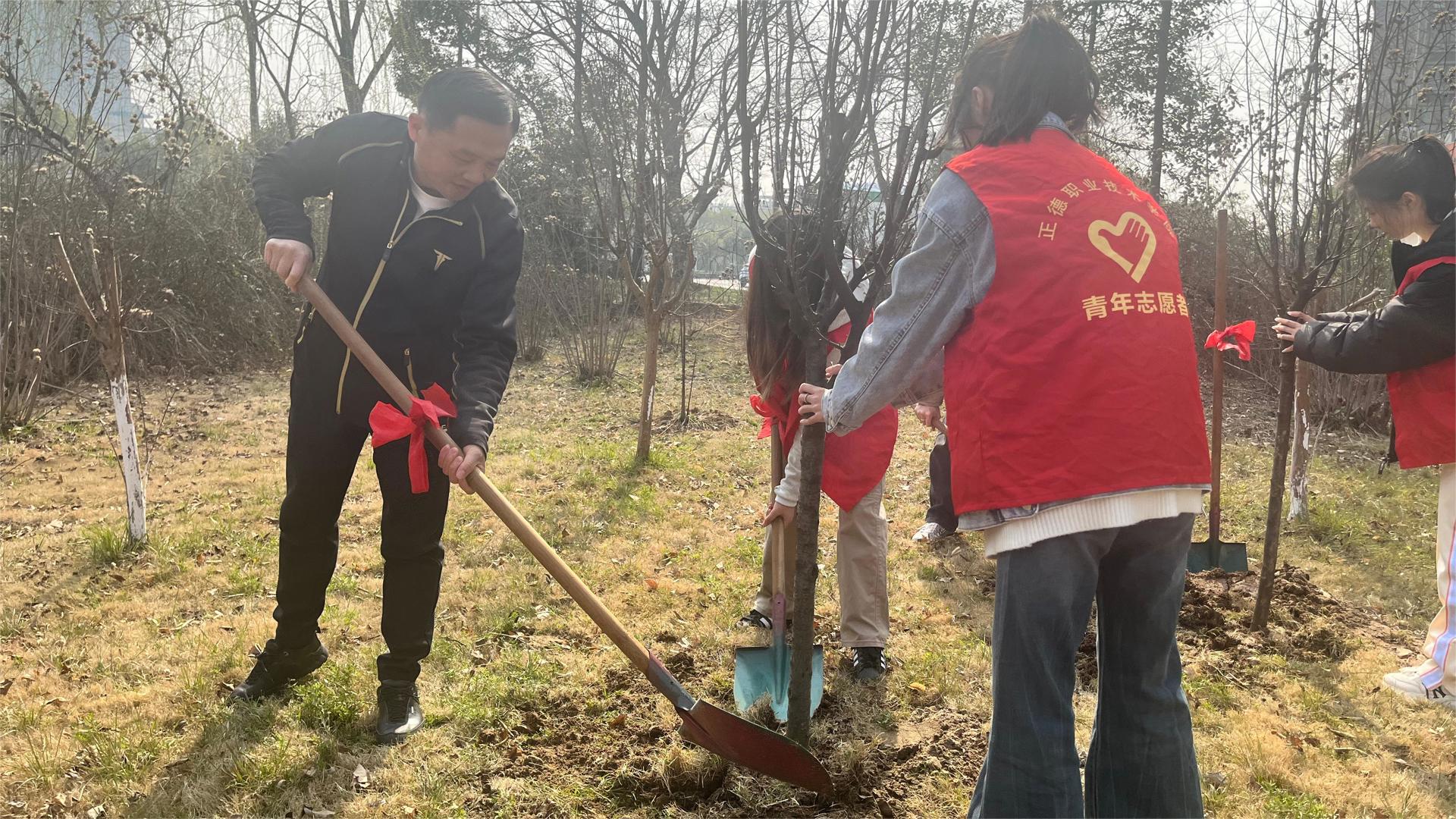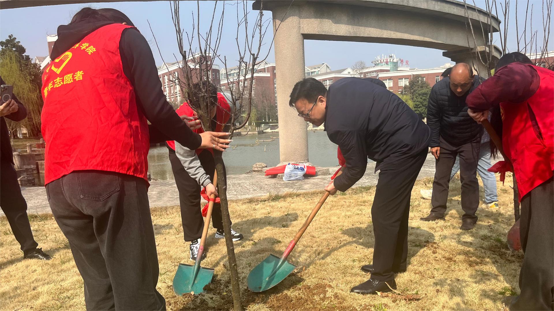 3月12日上午,院党委书记、政府督导专员孙雷,副院长高斌、江爱华、赵凯雷,同教职工和各系学生志愿者一起,参加植树节活动。