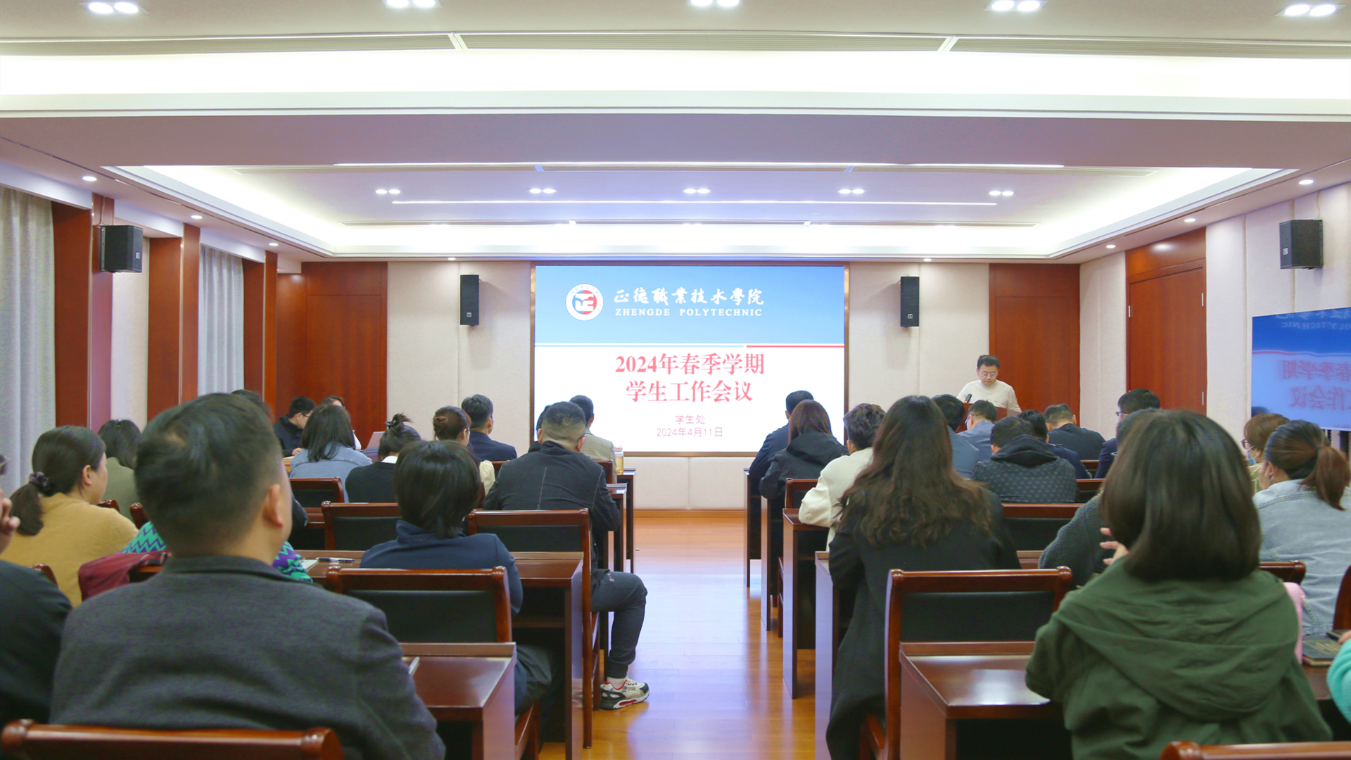 为全面贯彻落实立德树人根本任务,扎实推进春满四合院 学生工作安全、有序、高效进行,4月11日上午,春满四合院 在5201会议室召开2024年学生工作会议。党委副书记、副院长梁薇,院长助理王健,学生处处长祝佳俊、副处长毛茂,各系学生工作负责人、全体辅导员和学生处、团委全体工作人员参会。会议由团委书记黄晓帆主持。