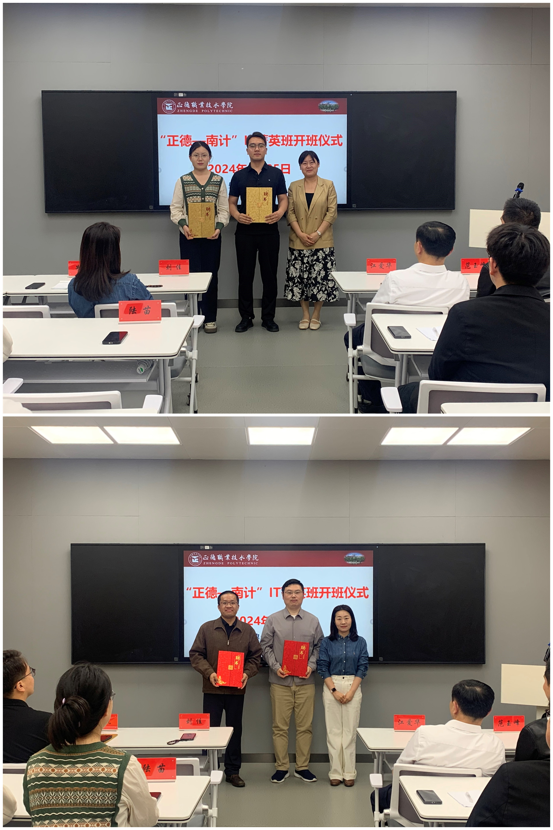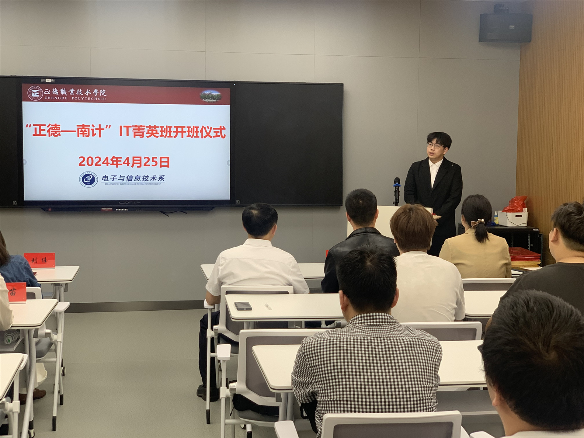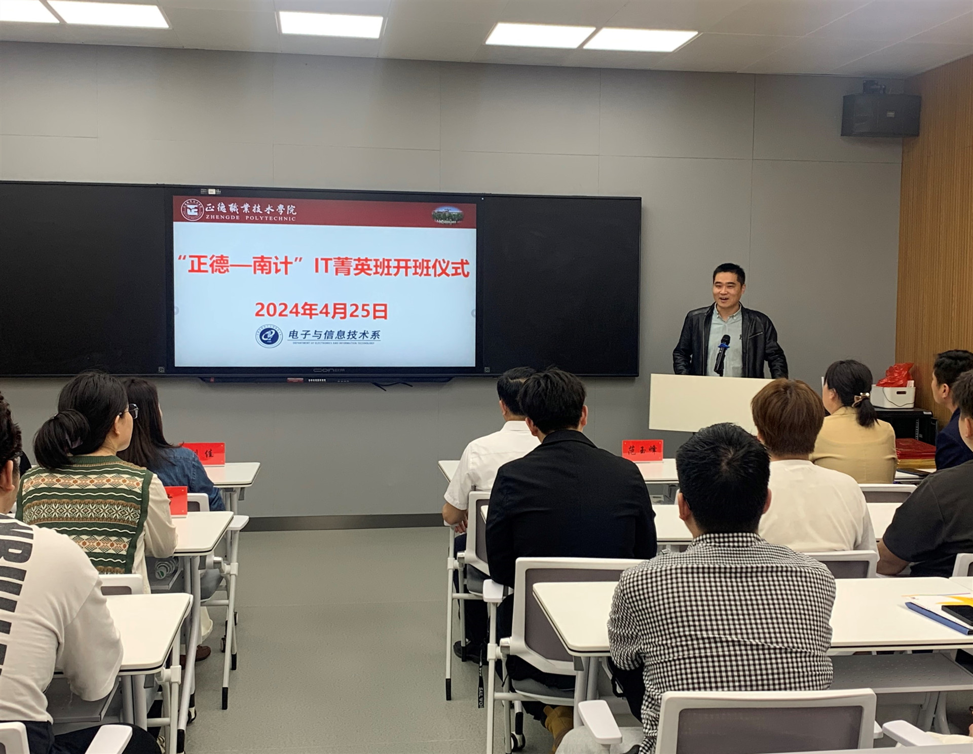 2024年4月25日下午,电子与信息技术系在教学楼9106成功举办“正德-南计”IT菁英班开班仪式,标志着校企合作办学迈向了一个新的台阶,为同学们提供了更广阔的职业发展空间和更优质的教育资源。
