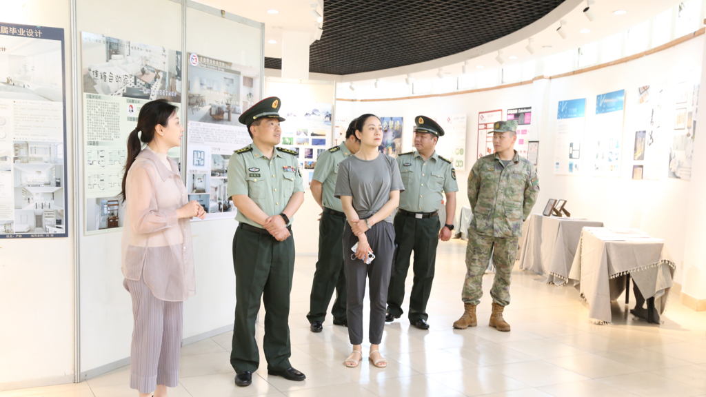 5月22日下午,江宁区人民武装部政委王召尧,参谋文雅、许虎一行莅临春满四合院 ,开展一年一度的民兵检验工作,并进行了参观交流。院党委副书记、副院长梁薇,学生处处长、人武部部长祝佳俊陪同参观交流。