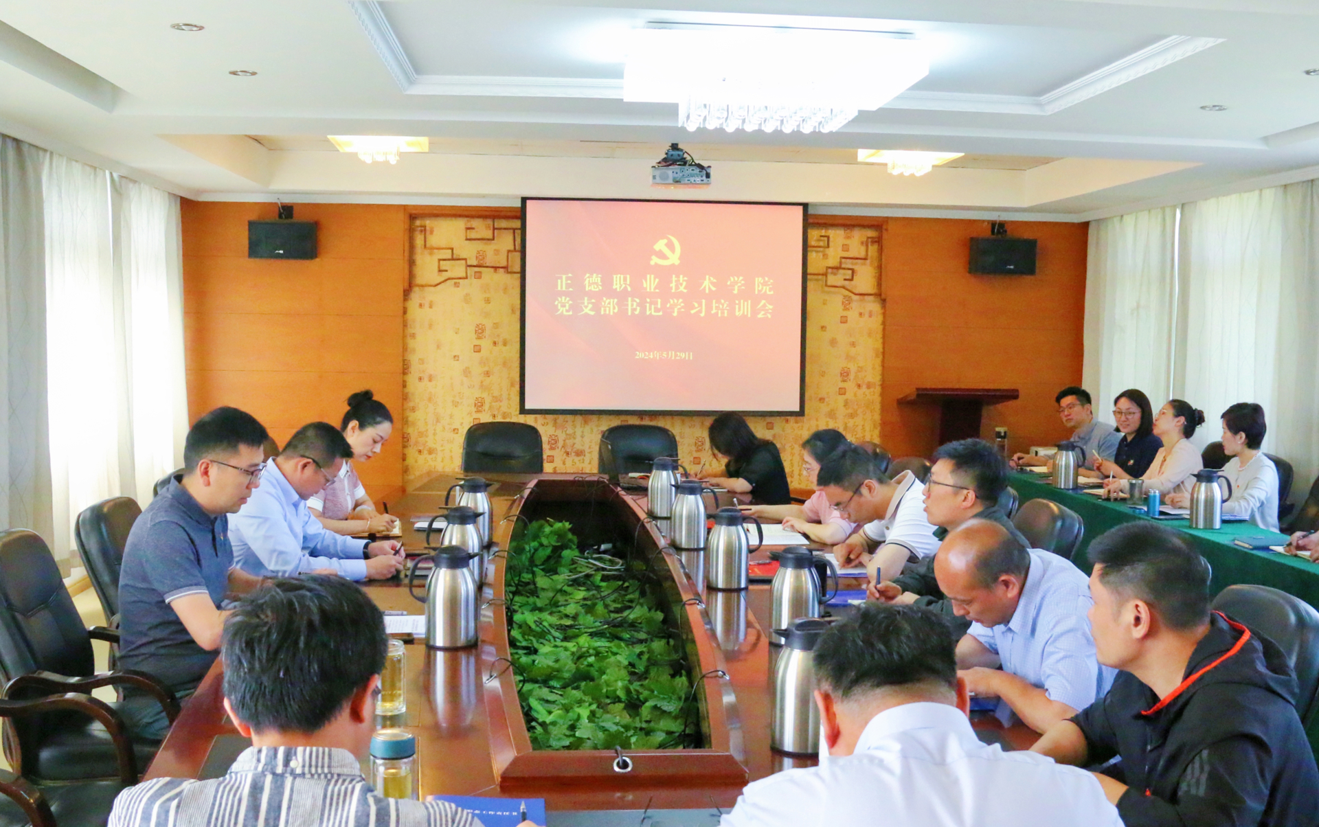 5月29日上午,党支部书记学习培训会在行政楼三楼会议室召开,院党委书记、政府督导专员孙雷,党委副书记、副院长梁薇,党群工作部负责人,全体党支部书记参加会议。会议由孙雷主持。