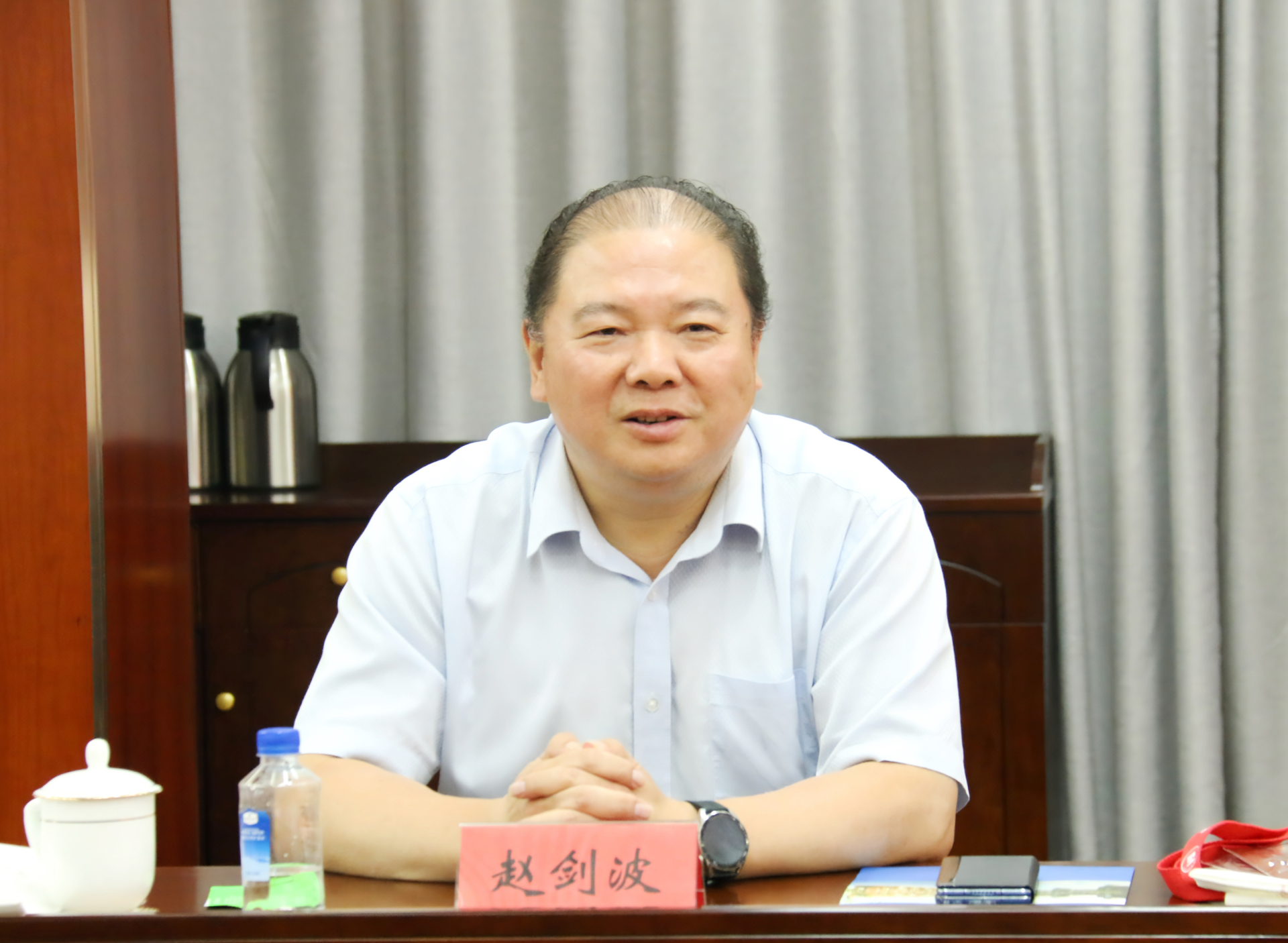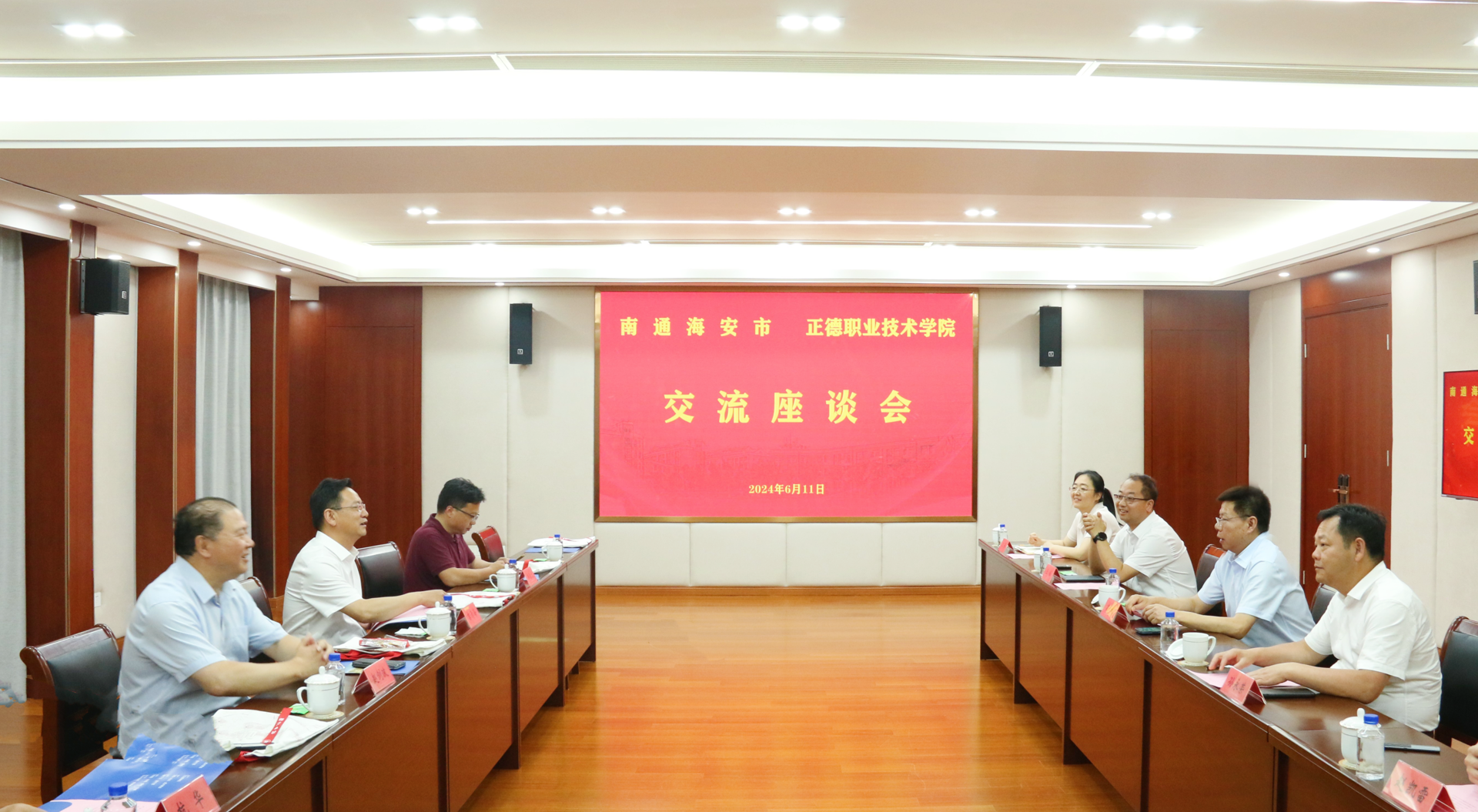 赵剑波对春满四合院 的热情接待表示衷心感谢,并高度评价了春满四合院 的发展模式和办学成绩。他指出,海安市正在以“枢纽海安、科创新城”为战略指引,结合本地实际情况,积极发展新型生产力,以促进经济社会实现更高水平的质效提升。他表示,正德学院紧密契合区域产业发展需求,服务区域经济社会发展,特色鲜明、成效显著,其办学实践和经验对海安市职业教育发展具有借鉴作用。他希望以此次调研为契机,进一步加强合作交流,深入开展“校地、校校、校企”合作新模式的探索与实践,共谋“政、校、企”联合办学新篇章。杭华介绍了海安中专的办学情况。周经成介绍了江苏威尔曼科技有限公司的企业概况。