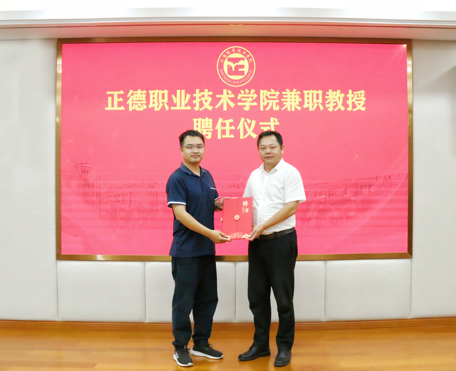 仪式上,徐进和赵凯雷代表双方签署了校企合作协议。随后举行了兼职教授聘任仪式,孙永荣为尹亮亮颁发了学院兼职教授聘书。校企双方还围绕产业发展、专业建设等方面进行了深入讨论和交流。