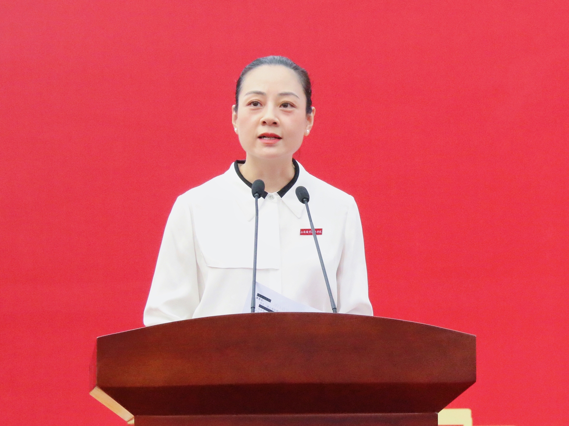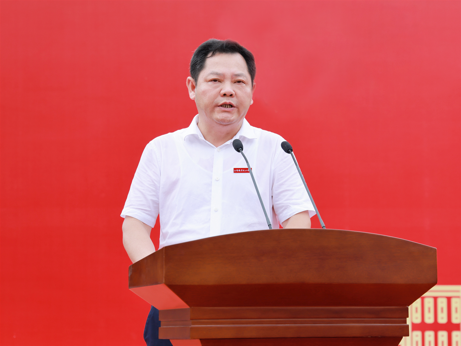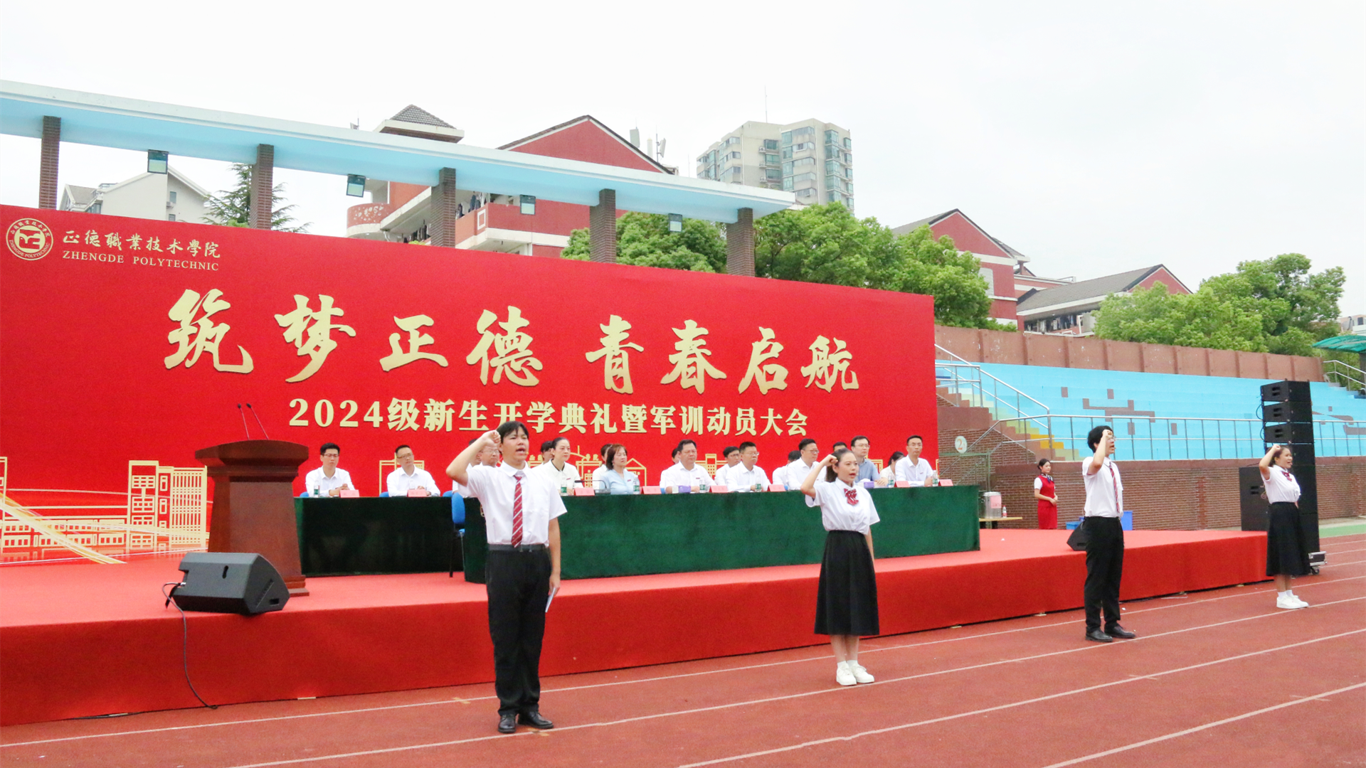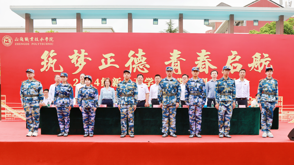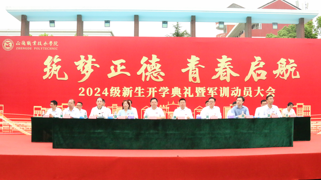 典礼上,学院领导为新生代表佩戴校徽。随后,全体新生集体佩戴校徽并庄严宣誓,励志“做一名勤于学习、善于创造、甘于奉献、勇于担当、怀揣梦想的正德人”。