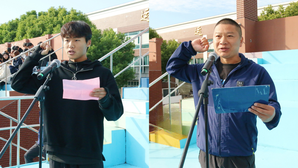 电子与信息技术系陈嘉乐同学代表运动员宣誓,公共教学部体育组陈海波老师代表裁判员宣誓。孙雷宣布运动会开幕。