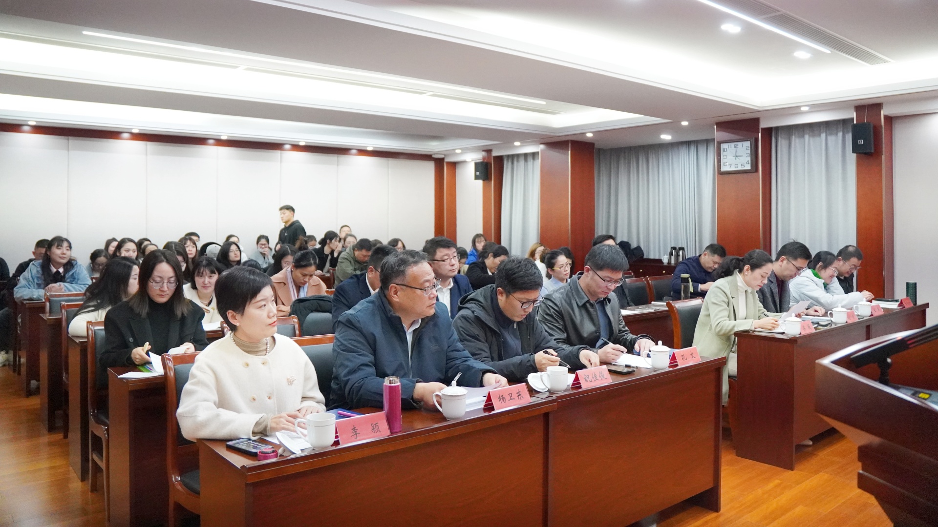为进一步加强学风建设,优化育人环境,不断提高人才培养质量,鼓励广大学子勤奋学习、顽强拼搏、争当先进,有力促进优良学风形成,服务学生全面发展和成长成才。学院于11月28日下午在5201会议室组织开展2023-2024学年学风建设先进单位评选会。党委副书记、副院长梁薇、人事处处长孔文、党群工作部部长祖国、学生处处长祝佳俊、教务处处长王燕、公共教学部主任杨卫东、院团委书记黄晓帆、思政教研部副主任李颖和全体学工干部参加。