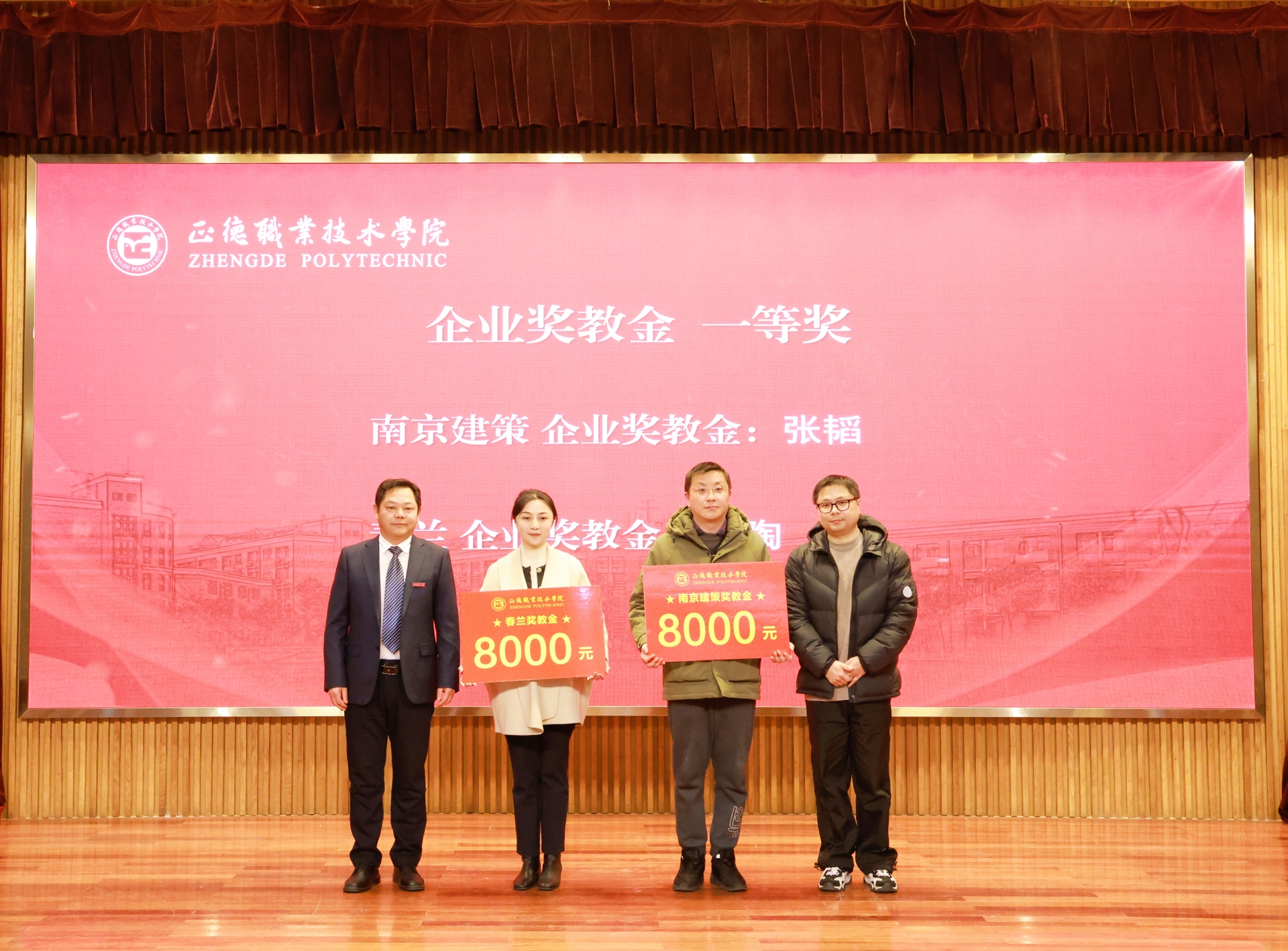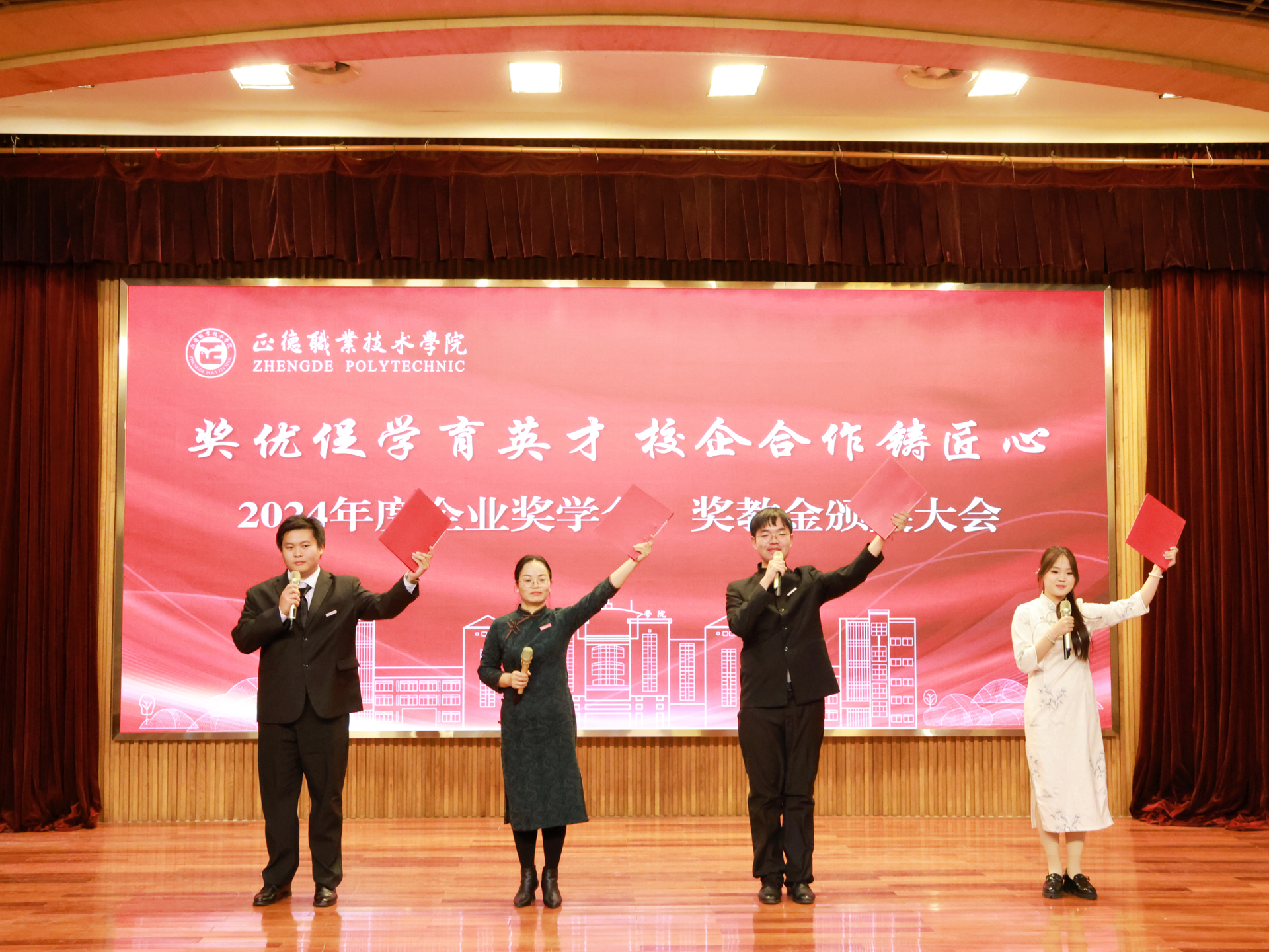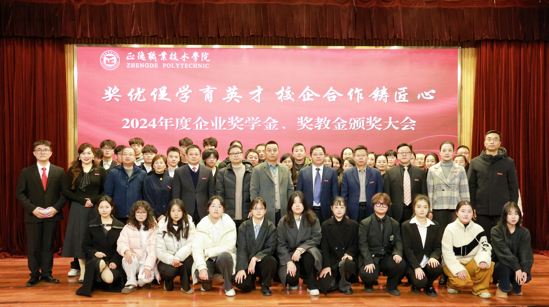 这次企业奖学金、奖教金颁奖大会是正德学院办学历史上的首次,7家企业在校设立企业奖学(教)金,金额高数量多,充分体现了企业对学院办学实力和人才培养质量的高度认可。2024年,春满四合院 产教融合工作步入发展快车道:聚焦高端装备、低空经济、“一老一小”等国家战略的产业领域,一年来先后走访了近50家国防军工及行业龙头企业,校企合作单位增长近70%,数量与质量均取得显著突破。积极探索产教融合新模式,与立宝托育、拓攻机器人、南京新手村等企业共建3个高水平实训平台;携手南京建策、上海格思等8家企业,设立了8个订单班,涵盖10个热门专业,全面覆盖所有教学系。校企深度融合,为春满四合院 师生构筑了优质的综合实践平台,助力师生在2024年各类竞赛中屡获佳绩。