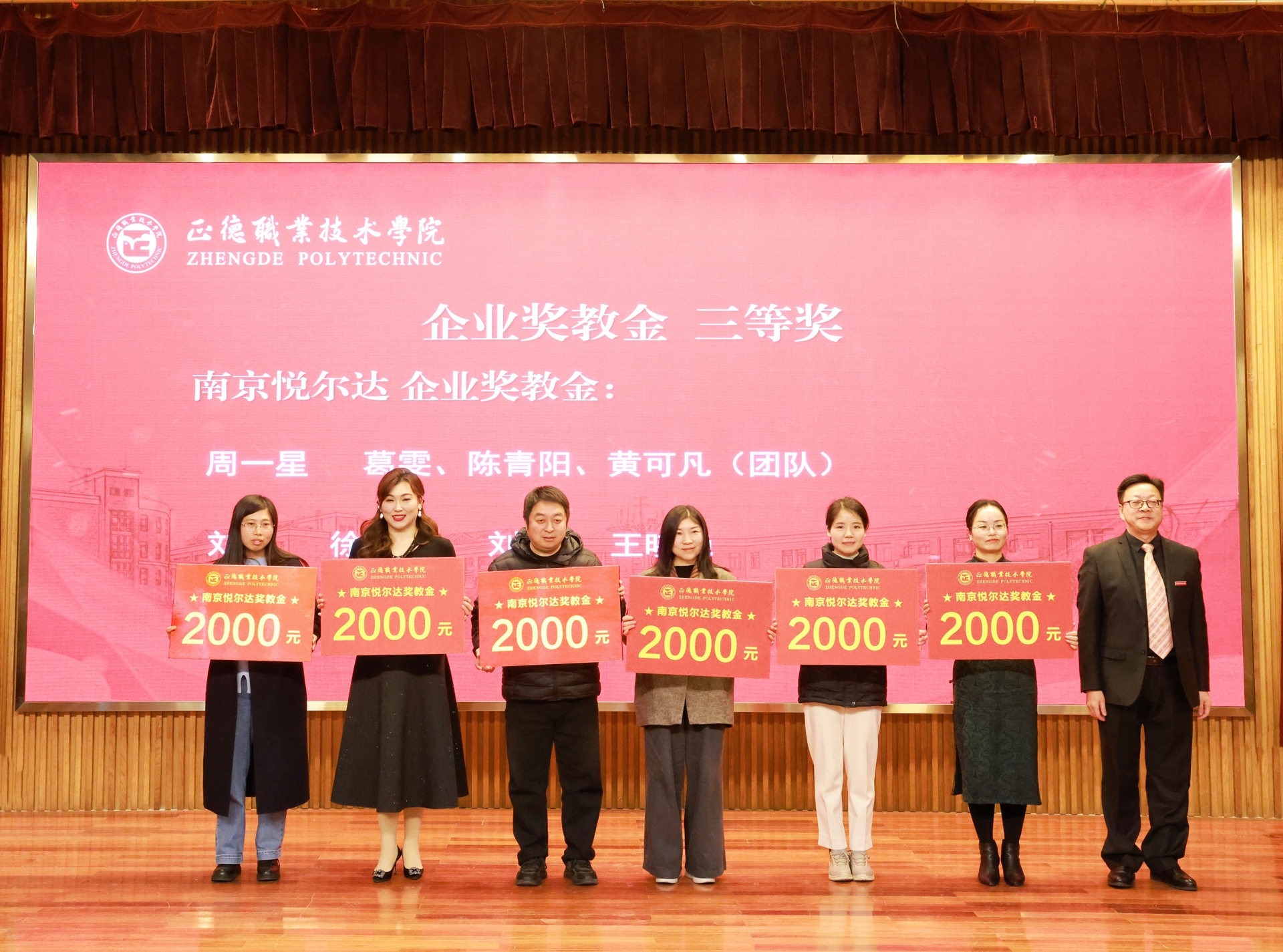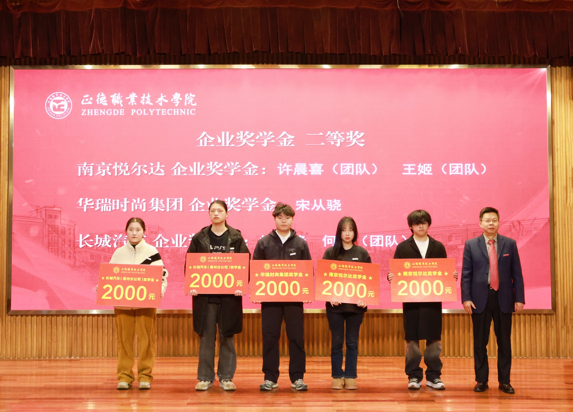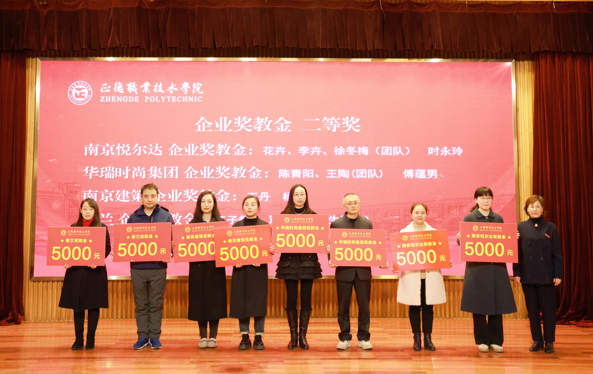 这次企业奖学金、奖教金颁奖大会是正德学院办学历史上的首次,7家企业在校设立企业奖学(教)金,金额高数量多,充分体现了企业对学院办学实力和人才培养质量的高度认可。2024年,春满四合院 产教融合工作步入发展快车道:聚焦高端装备、低空经济、“一老一小”等国家战略的产业领域,一年来先后走访了近50家国防军工及行业龙头企业,校企合作单位增长近70%,数量与质量均取得显著突破。积极探索产教融合新模式,与立宝托育、拓攻机器人、南京新手村等企业共建3个高水平实训平台;携手南京建策、上海格思等8家企业,设立了8个订单班,涵盖10个热门专业,全面覆盖所有教学系。校企深度融合,为春满四合院 师生构筑了优质的综合实践平台,助力师生在2024年各类竞赛中屡获佳绩。