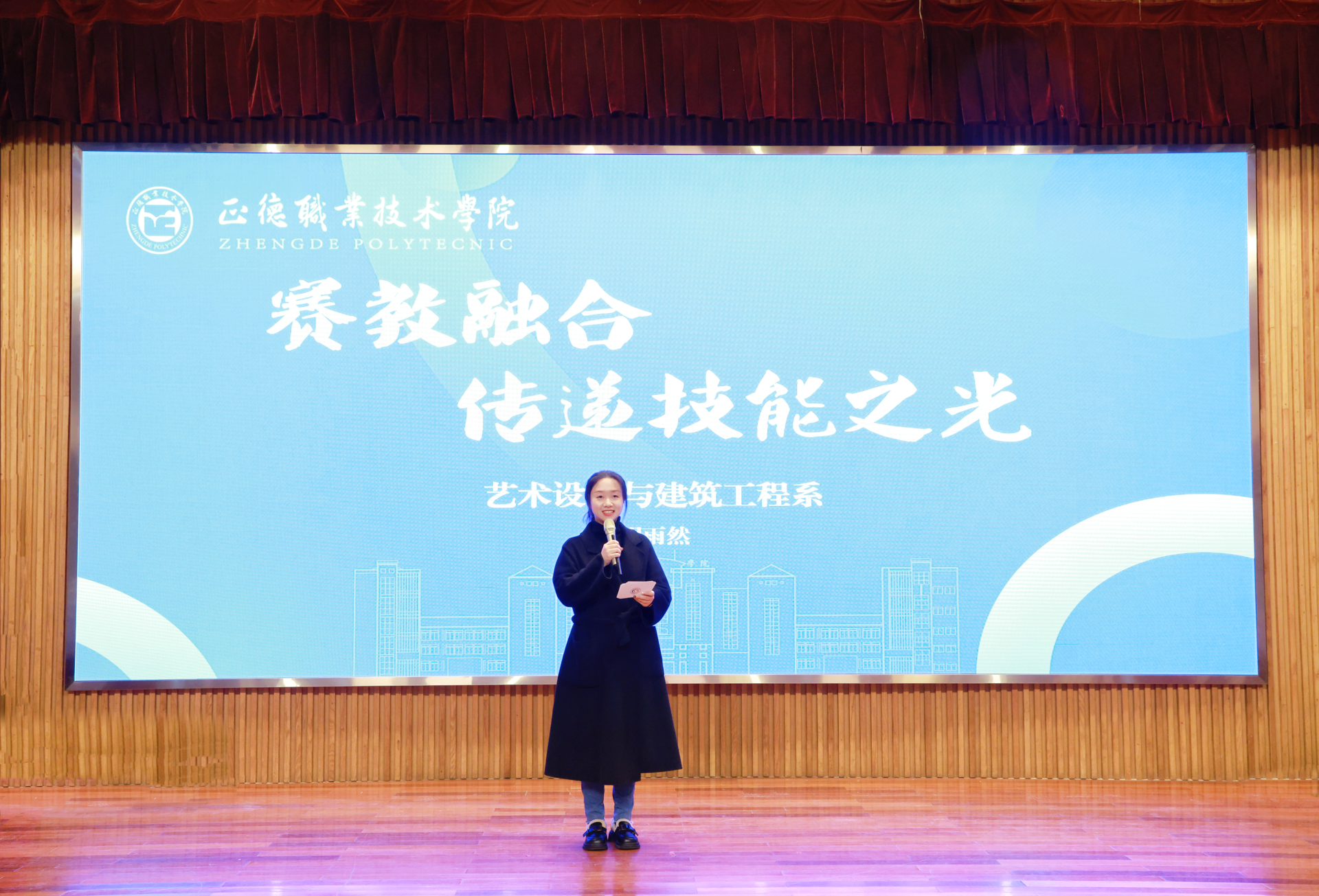 汽车与机电工程系2022级李欣诺作为学生代表发言。她分享了自己在技能发展等方面一步步走向成功的经历,2024年她克服困难,刻苦训练,在第三届“外教社杯”江苏大学生“用英语讲好家乡故事”演讲比赛职业院校组获得特等奖;在中国教育电视台“外研社杯”职场英语挑战赛写作大赛夺得二等奖;在“中国银行杯”江苏省职业院校技能大赛获得二等奖;在江苏省职业院校技能大赛(英语口语)获得二等奖。她在发言中深情表示,会珍惜这份荣誉,牢记责任,不负学校栽培,以更加优异的成绩回报学校,回报社会。艺术与建筑工程系胡雨然作为获奖教师代表发言。胡雨然老师潜心教学、深耕教学,成绩斐然,2024年她先后在国际汉字设计海报展获中华人民共和国驻英国大使馆颁发的入选奖(最高级别);全国数字艺术设计大赛教师组获国赛一等奖、二等奖;第五届“东方创意之星”教师教学创新大赛获省赛特金奖、国赛铜奖;第五届江苏省科学与艺术创新大赛教学技能赛省赛一等奖等15项省级以上赛事奖项,同时带领学生在第六届江苏省高校设计作品展获省赛一等奖1项、二等奖2项;“艺融杯”江苏艺术设计大赛获省赛获金奖1项、银奖2项等19项省级以上赛事中的重要奖项。她分享了个人在实践育人、科研育人、思政育人等方面的心得体会,表示将与其他老师一起努力,深化产学研合作与创新,为社会培养更多优秀学生!