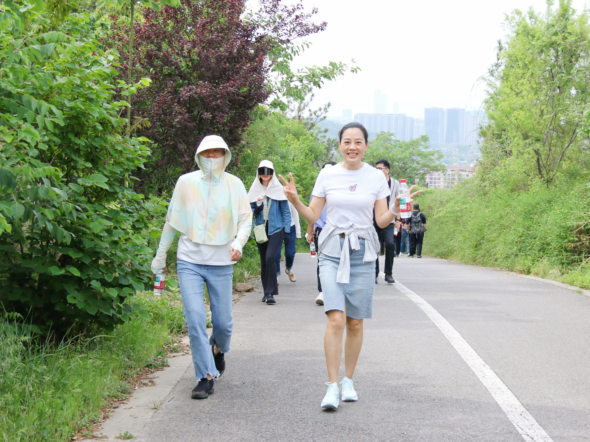 4月30日下午阳光明媚,微风轻拂,大家按时来到集合点,认真做着准备活动,随着发令枪响,登山活动正式开始。山路两旁,绿树成荫,繁花似锦,大家一边健走,一边分享着彼此生活工作中的趣事,享受着此刻踏青带来的快乐。