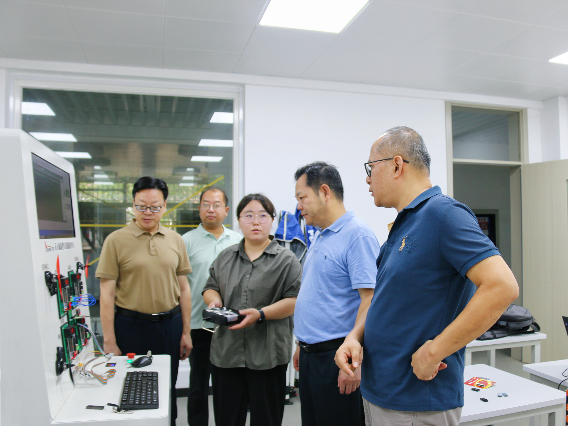 在实验室,院领导深入了解了“正德-大华”无人机实训室建设进展情况,重点查看了无人机总装训练平台、姿态动力调参实训系统及三维建模系统实训平台等核心设备的性能参数和应用场景,并与现场负责人就教学融合方案展开交流。孙永荣对实训室整体建设成效给予肯定,要求相关部门加强协调合作,确保项目高质量按时完成,他强调要充分依托先进实训平台,培养契合行业需求的高素质技能人才。