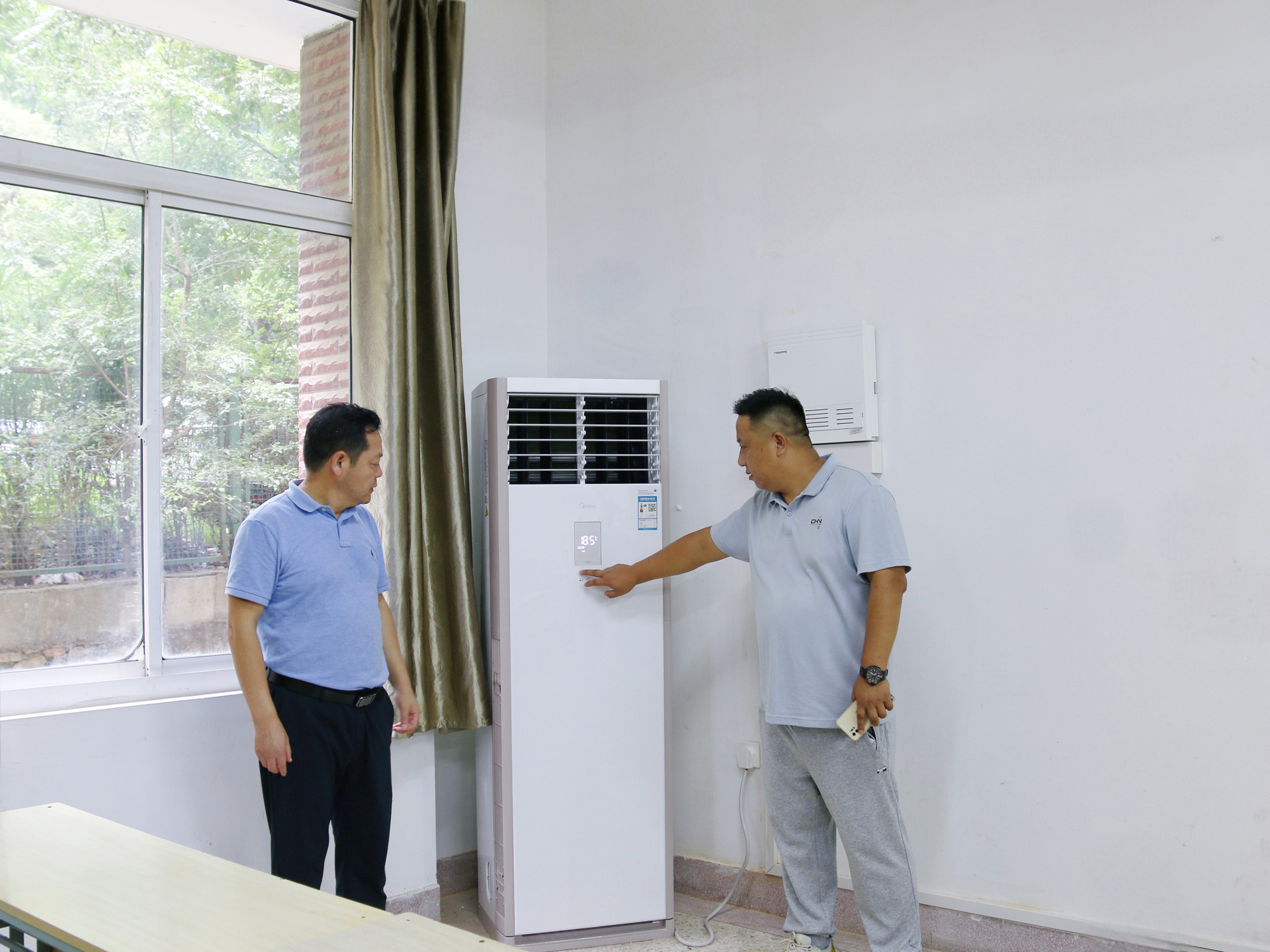 在教学楼,院领导实地察看相关电力增容,教室空调安装及管理情况,并听取相关人员关于技术规范及安全管理的汇报。孙永荣强调,要严把安全关、质量关,确保开学前所有教室完成空调安装和调试工作,切实提升师生学习环境舒适度。