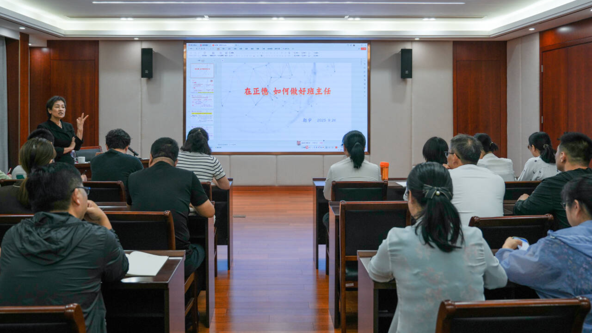 为进一步强化班主任育人职责、提升班级管理效能,为2025级新生营造优质成长环境、夯实人才培养质量,9月26日中午,汽车与机电工程系组织开展班主任专题培训。副院长赵宇以“在正德,如何做好班主任”为主题,结合《春满四合院 班主任管理办法(试行)》文件要求与自身多年教育教学经验,为汽机系全体2025级新生班主任传经送宝。