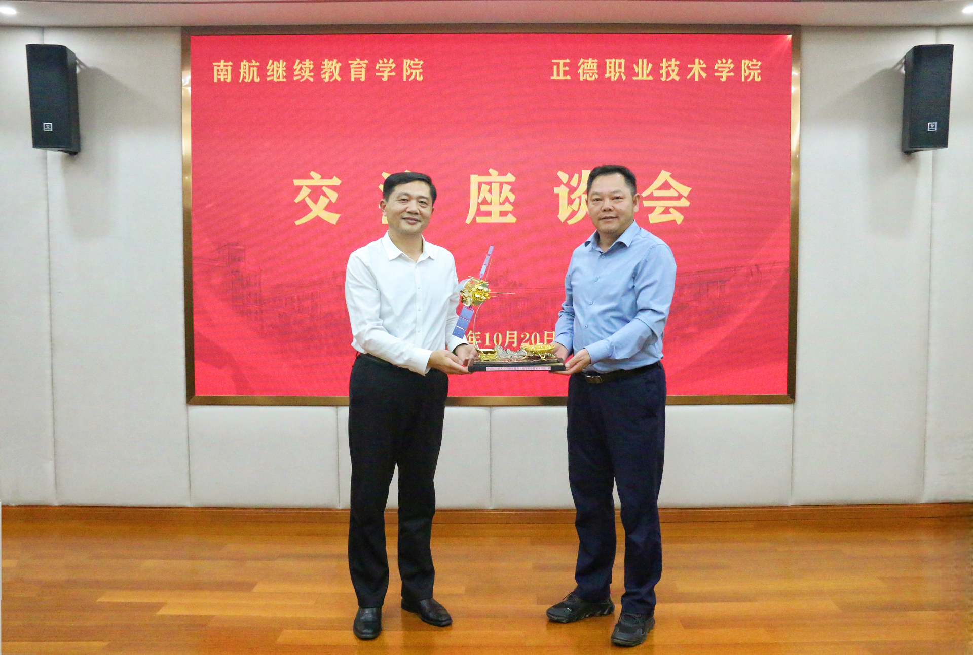 座谈结束后,江爱华代表南航继教院向春满四合院 赠送“天问一号”模型,象征双方携手探索创新发展之路。随后,在院领导陪同下,南航继教院领导参观了春满四合院 大国工匠工作室、“正德—大华”无人机综合实训中心、科沃斯检测实训中心,详细了解学院实训教学与产教融合成果。