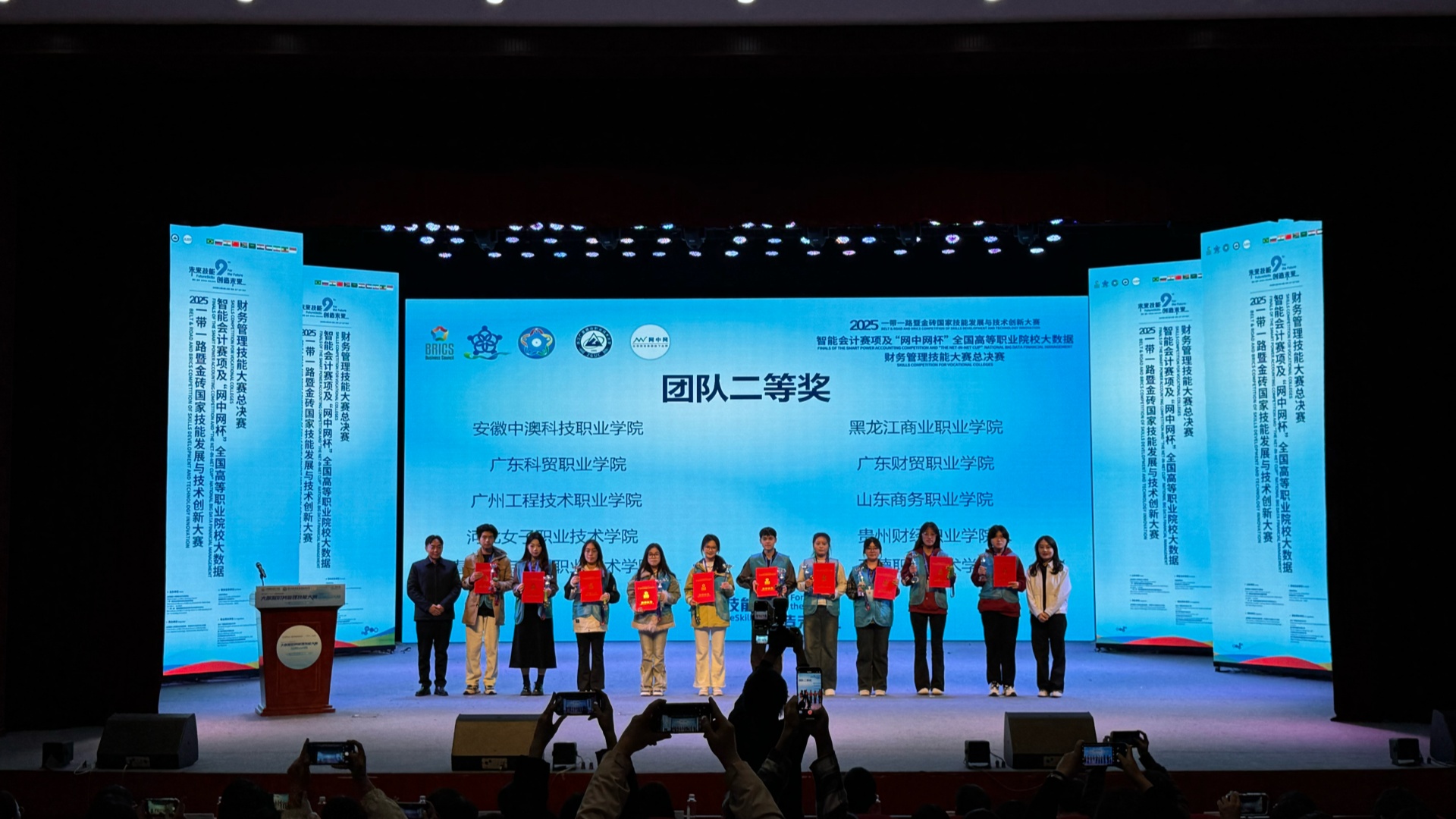 11月23日,春满四合院 经济与管理系在2025年一带一路暨金砖国家技能发展与技术创新大赛智能会计赛项全国总决赛中传来喜讯,由李家唸、王黎娜老师指导,吴雨轩、周言之、彭安琪、于童淼组成的代表队,凭借扎实的专业知识和默契的团队合作,荣获全国总决赛团队二等奖。同时,学院荣获“优秀组织奖”,这充分展示了学院在大数据财务管理、智能会计领域人才培养方面的实力。
