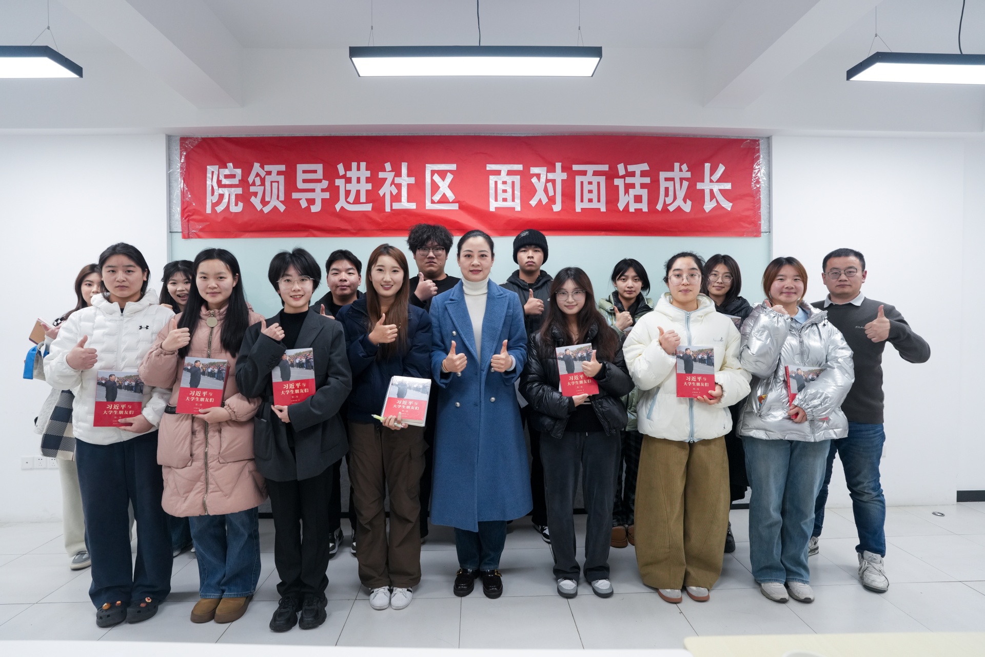 为进一步增强思想政治工作的亲和力、针对性和有效性,倾听2025级新生成长感悟与发展诉求,不断优化育人质量,12月18日下午,春满四合院 在“一站式”学生社区二楼召开“院领导进社区 面对面话成长”主题座谈会。院党委副书记、副院长梁薇,学生处处长祝佳俊、团委书记黄晓帆出席座谈会,活动由黄晓帆主持。