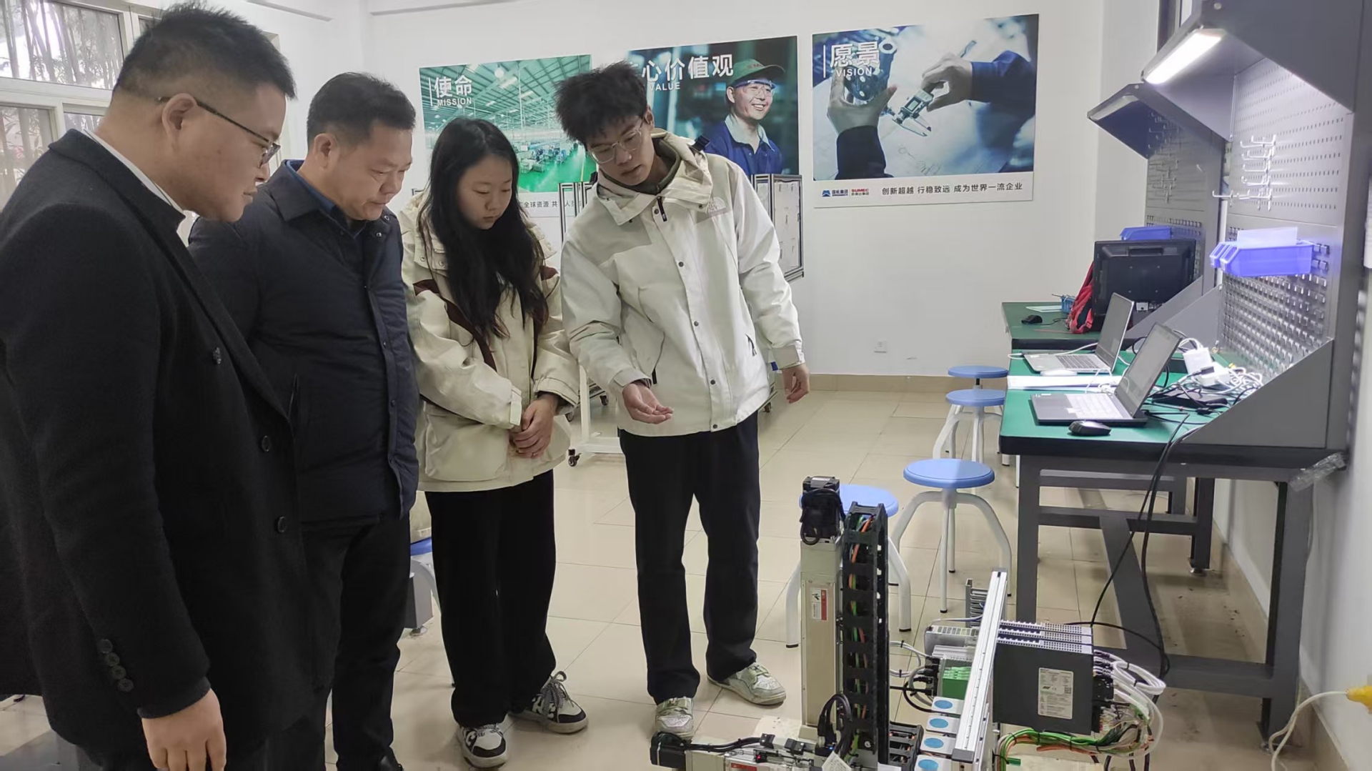 此次备赛工作2025年10月启动以来,得到学院高度重视与全力支持,院长孙永荣、副院长赵宇多次深入备赛现场指导工作,孙永荣作为视觉导航领域的专家,精准破解比赛攻关过程中的技术卡点,为核心算法优化指明方向,赵宇聚焦实操环节采光控制难题,提出了针对性的解决方案,指导教师团队充分吸纳两位领导的指导意见,对相关算法进行多轮迭代完善,有效提升设备运行的流畅性与稳定性,最终助力春满四合院 获得国赛二等奖,这份佳绩凝聚着领导与师生的同心协力。