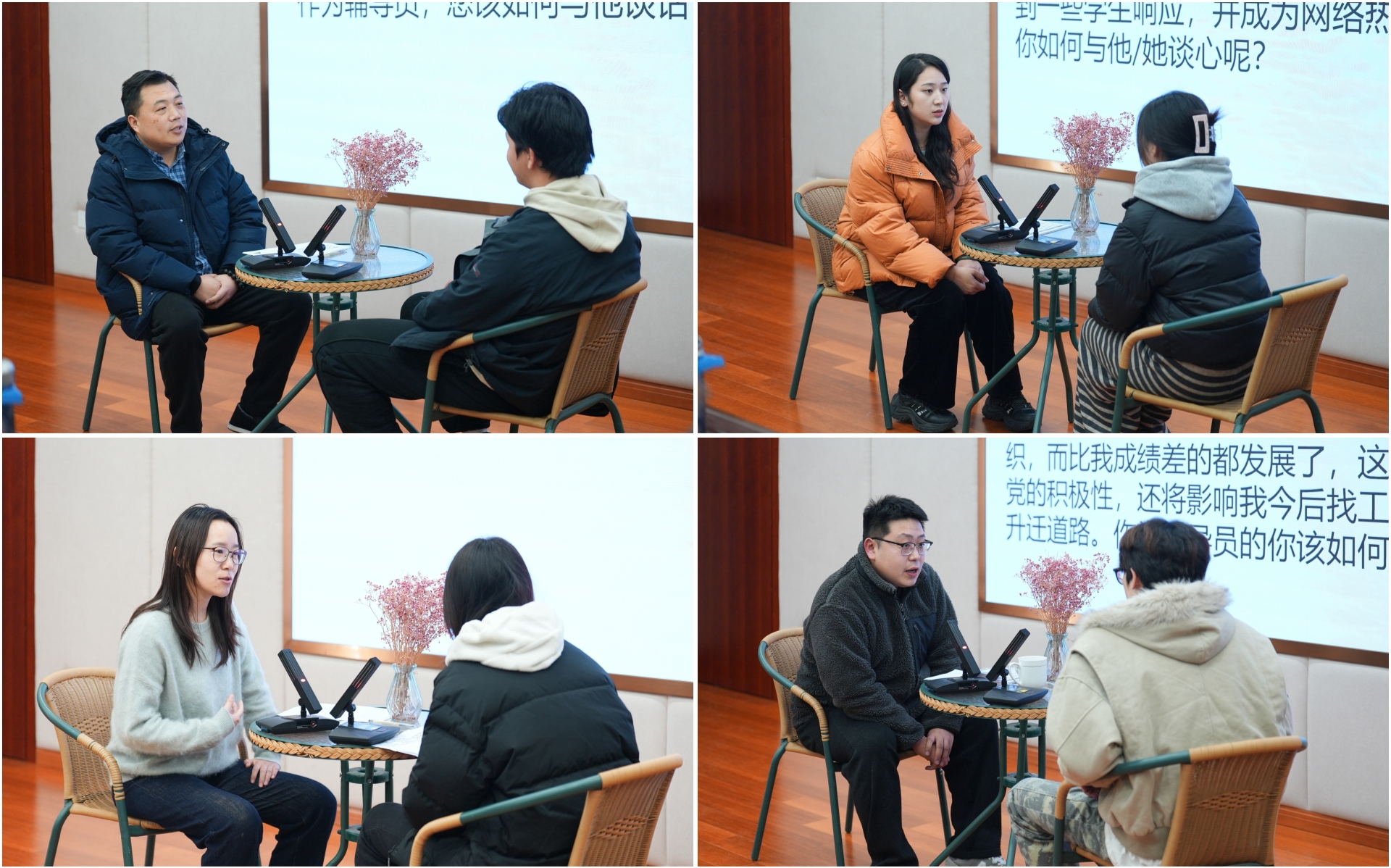 复赛谈心谈话环节,辅导员在对相关理论政策、学生特征、学生成长成才规律等充分了解的前提下,以情景再现的方式对学生进行教育引导,面对由学生扮演“学业压力”“人际矛盾”“职业迷茫”等角色,辅导员们以共情倾听切入,通过价值引领与心理疏导相结合的方式,巧妙化解学生困惑,生动诠释了“成长引路人”和“知心朋友”的双重角色内涵。