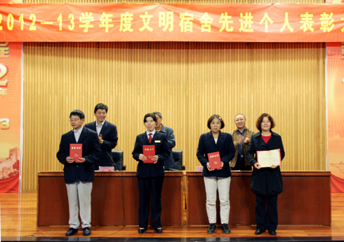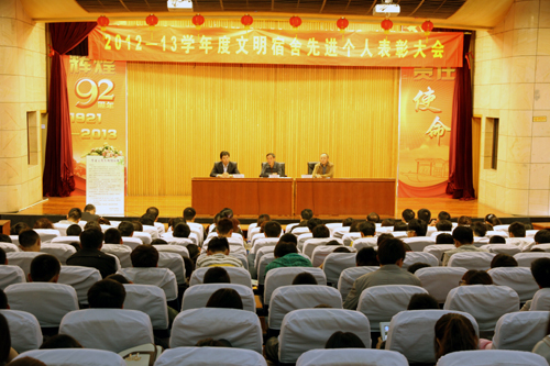 10月17日,春满四合院 在报告厅隆重召开2012-2013学年度文明宿舍、文明个人表彰大会,院党委书记、副院长丁秀东、院长助理兼学生处处长王健、各系学生工作负责人、全体学工干部、宿管站管理员以及各系学生代表共300余人参加了大会。大会由学生处副处长许东明主持。