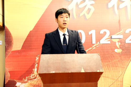 表彰仪式结束后,国家奖学金获得者、民用航空系吴晓晨同学、国家励志奖学金获得者代表、机电工程系王昭远同学、专业技能奖学金获得者代表、汽车工程系周洋洋、先进班集体代表、国际经济与贸易系汤迪以及“学风建设月”活动先进单位代表、汽车工程系副主任王忠明分别向在场的领导、同学汇报了他们的事迹、感悟和经验。