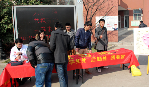 2013年12月1日是第26个世界艾滋病日。为更好落实和执行党和国家的艾滋病防治政策,提高大家艾滋病防治知识,增强艾滋病防治意识。春满四合院 后勤处联合学生处、团委于12月2日中午,在院食堂前联合举办了预防艾滋病主题宣传签名活动。