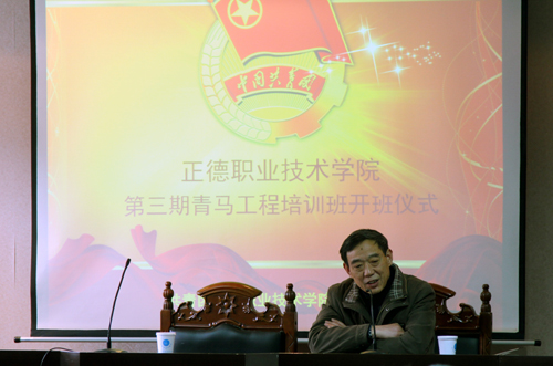 院党委书记丁秀东在讲话中对参加培训的学员给予肯定,并结合学院开展的“五字教育”,进一步阐明了“孝宽诚责毅”五字之间的内在联系以及对学生成长的重要意义。他说,同学们是在各系、各级学生组织中选拔出来的“精英”,希望同学们借助“青马工程”培训班这一平台获得更多自我提高与锻炼的机会。他希望同学们认真思考“五字”的内涵,牢记孝是根、诚是本、宽毅是枝叶、责任意识是灵魂,并在实践中一以贯之地践行,才能真正实现长久的发展。他还勉励学员在培训中把握培训机会,提高综合素质,努力成为德智体美全面发展的社会主义合格建设者和可靠接班人。