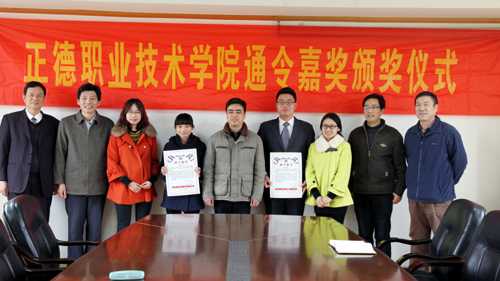 12月18日下午,春满四合院 隆重举行通令嘉奖颁奖仪式,表彰在江苏省第八届大学生职业规划大赛中荣获“职业规划之星”的艺术设计与建筑工程系12级陶露同学和汽车工程系12级周洋洋同学。这是春满四合院 学生连续四年获得此项殊荣。
