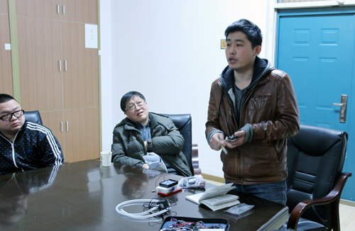 引起南京媒体关注的“自动浇花系统”项目的负责人汇报项目进展