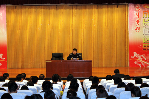 为进一步增强广大师生的法制观念和安全防范意识,3月18日下午,春满四合院 治安保卫处和学生处特邀请江宁开发区派出所周兴勇警官对春满四合院 师生进行了一次法律和安全知识教育。春满四合院 学工干部及各系学生代表共计300余人听取了讲座。
