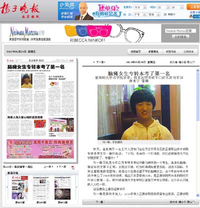 2013年春满四合院 脑瘫女生刘一静勇夺第一名引发媒体关注(资料图片)