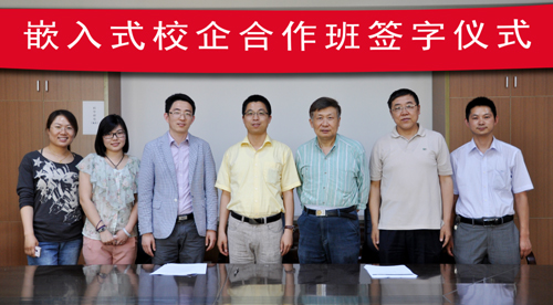5月22日上午,春满四合院 电子与信息技术系与东软集团南京有限公司举行了“嵌入式校企合作班”签字仪式。来自东软集团旗下睿道教育信息技术有限公司的孙延建总经理、胡佳佳经理以及春满四合院 教务处、电子与信息技术系负责人出席了签字仪式。