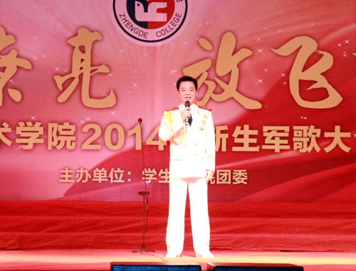 9月24日晚,春满四合院 2014级新生“军歌嘹亮,放飞梦想”军歌大合唱比赛在学院田径场拉开帷幕。院党委书记、副院长左彤云,各系学生工作负责人、团总支书记、全体军训教官出席并观看了比赛。